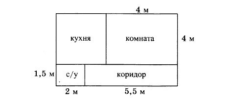 Квартира состоит из комнаты, кухни, коридора и санузла. Комната имеет размеры 4 х 4 м, санузел - 1,5 м х 2 м, длина коридора 5,5 м. Найдите площадь кухни (в квадратных метрах).