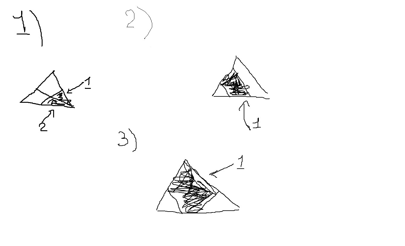 Как провести 2 отрезка в треугольнике,чтобы получилось 2 треугольника,1 четырёхугольник и 1 пятиугольник?