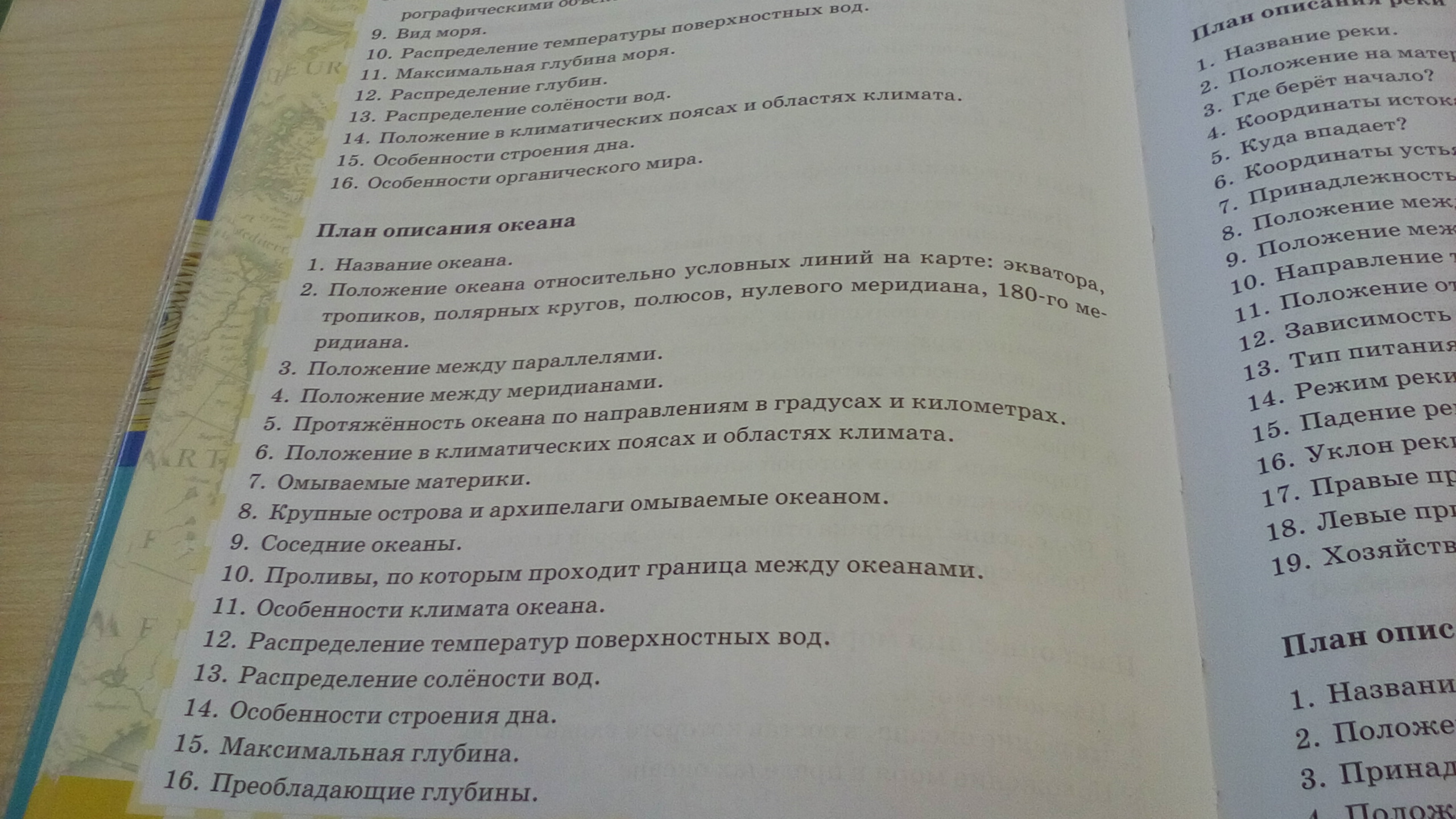 2 Положение океана относительно условных линий на карте:экватора,тропиков,полярных кругов,полюсов,0 меридиана,180 меридиана.Океан примерно по середине пересекается экватором,в северной части Северным тропиком и Северным полярным кругом,на юге он пересекается Южным тропиком и Южным полярным кругом,в восточной своей части он пересекает 0 меридиан.180 меридиан он не пересекает.