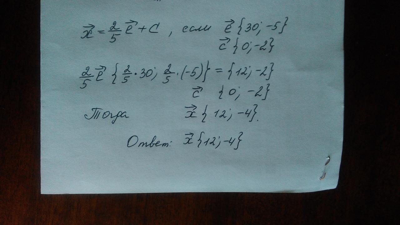 Найдите координаты вектора х,если х=2/5е+с, вектор е{30,-5},с{0,-2}