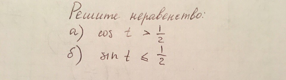 Решите неравенство а)cost > 1/2 б)sint=< 1/2