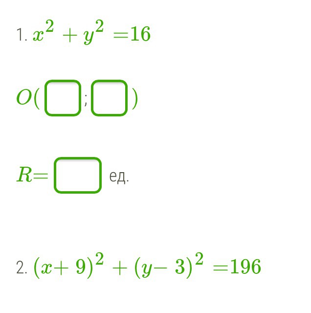 Используя данную формулу окружности, определи координаты центра O окружности и величину радиуса R.