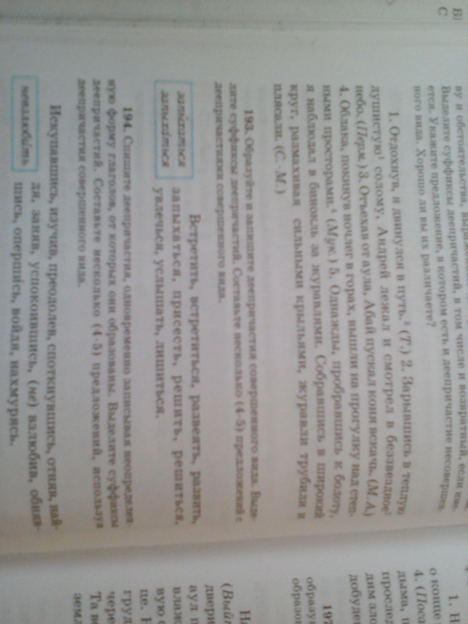 Встретив, Встретившись, Развеяв, Развив, Запыхавшись, Присев, Решив, Решившись, Увлёкшись, Услышав, Лишившись