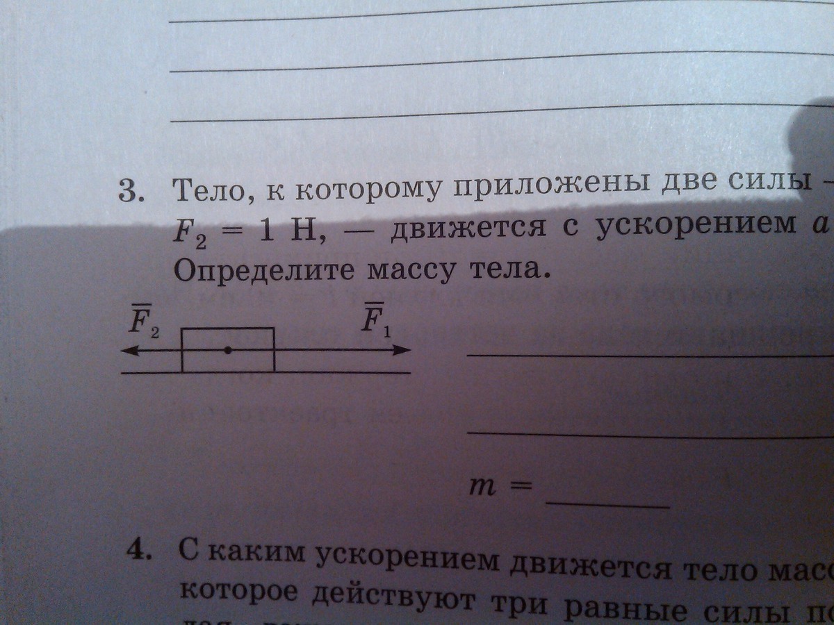 R=F2-F1=ma, m=(3-1)/a=2Н/0,4м/с^2=5( кг*м/с^2)/(м/с^2)=5кг.