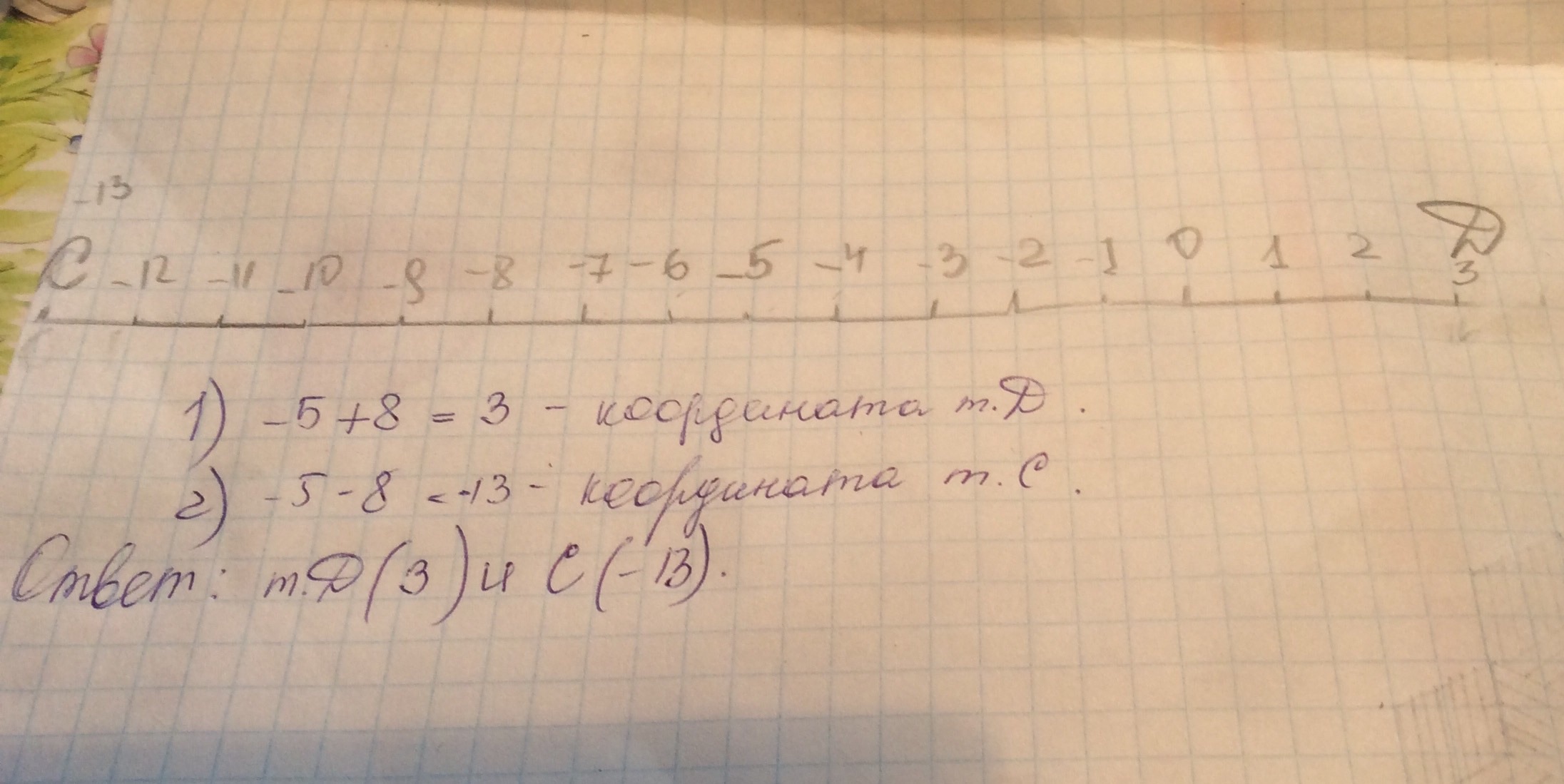 Длина единичного отрезка на координатной прямой равна 1 см. Длина отрезка CD равна 16 см. Середина отрезка изображается точкой с координатой -5. Найдите координаты точек C и D.