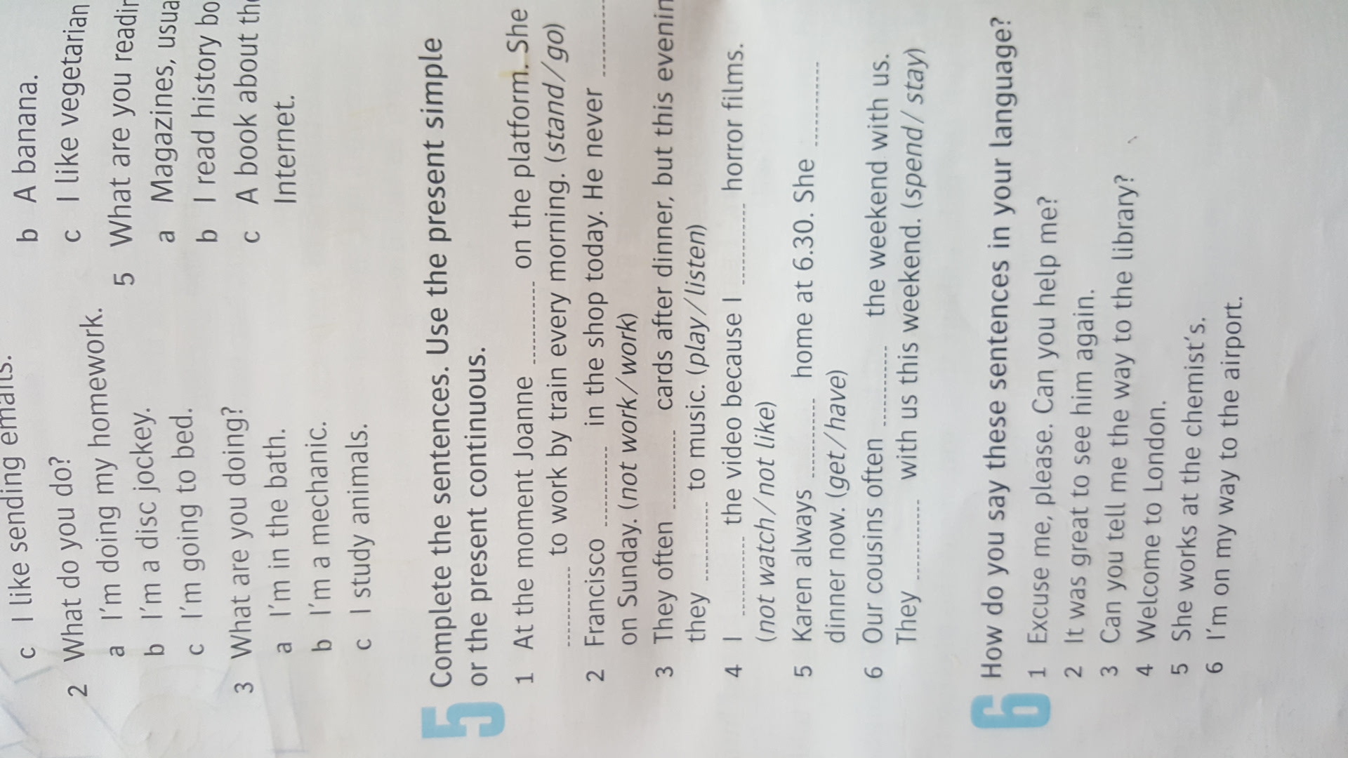 1. At the moment Joanne..............on the platform. She...............to work by train every morning. (stand/ go)