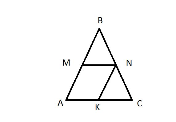 Тут два подобных треугольника ABC - большой, и MBN - маленький.