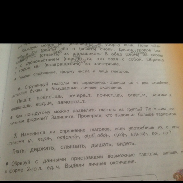 Пишет, Поклеишь, Вечереет, Почистишь, Ответом, Запомнит, Плаваешь, Ездим, Заморозит.