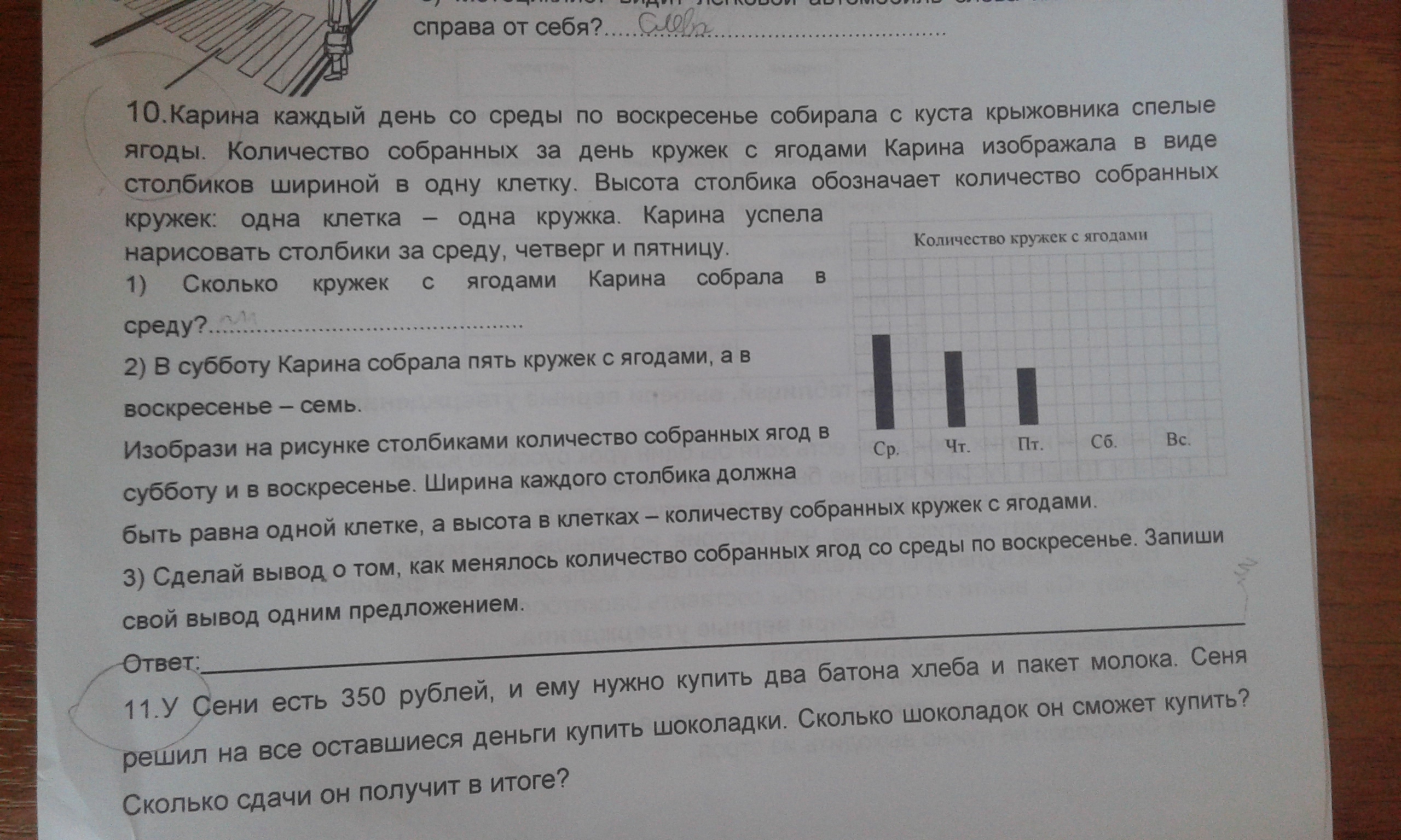 2)в диаграмме закрасить над субботой 5 клеток,над воскресеньем 7 клеток закрасить