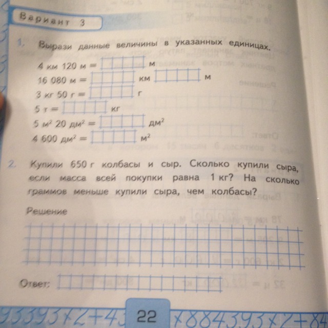 3) 650г.-350г.=на 200г. меньше купили сыра чем колбасы (это уже ответ)