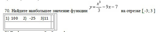 Точки экстремума совпадают с границами отрезка,поэтому находим значения функции в этих точках и выбираем наибольшее: