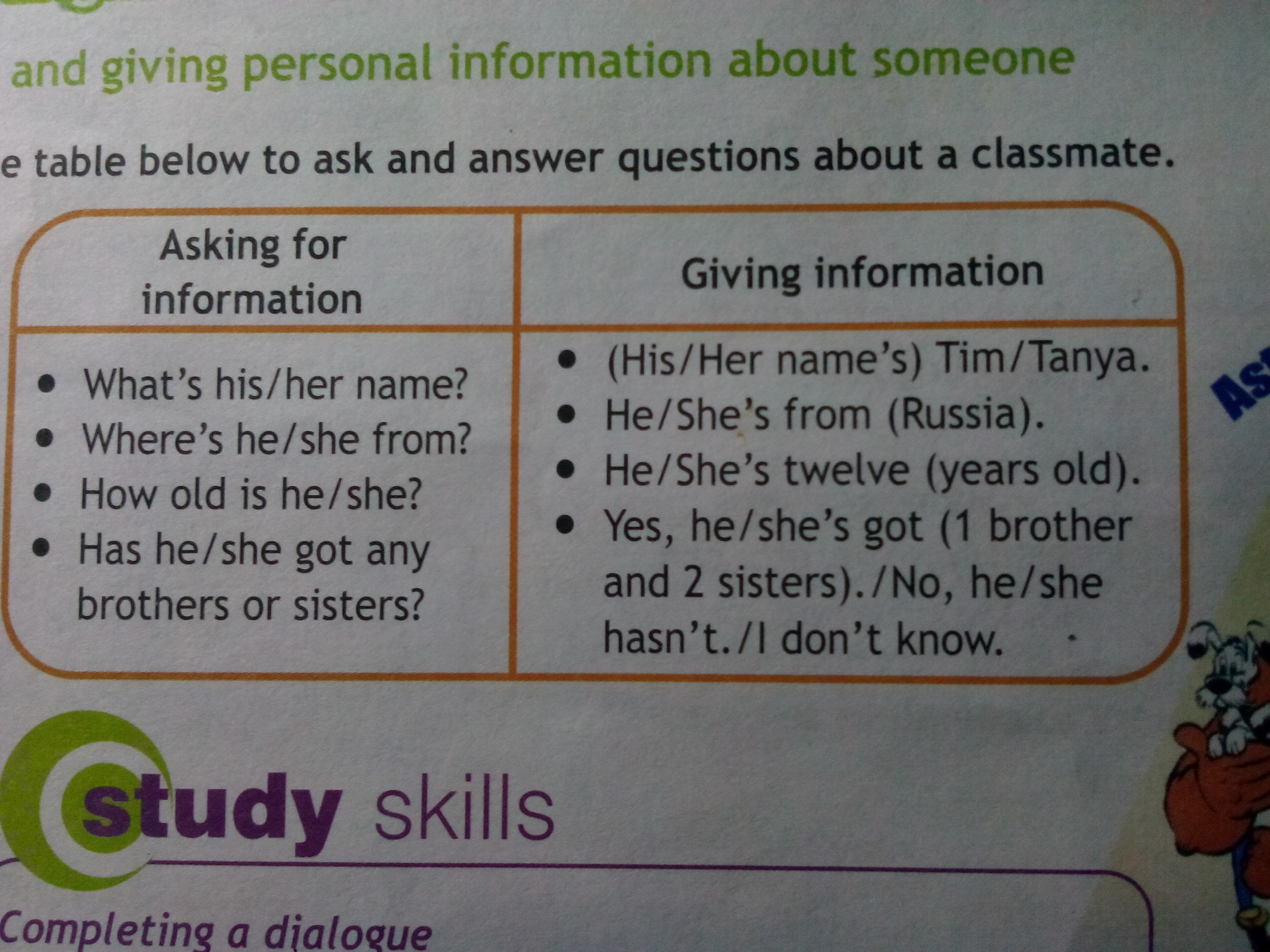 3)Сколько лет ему/ей? 3) Ему/ей 12 лет