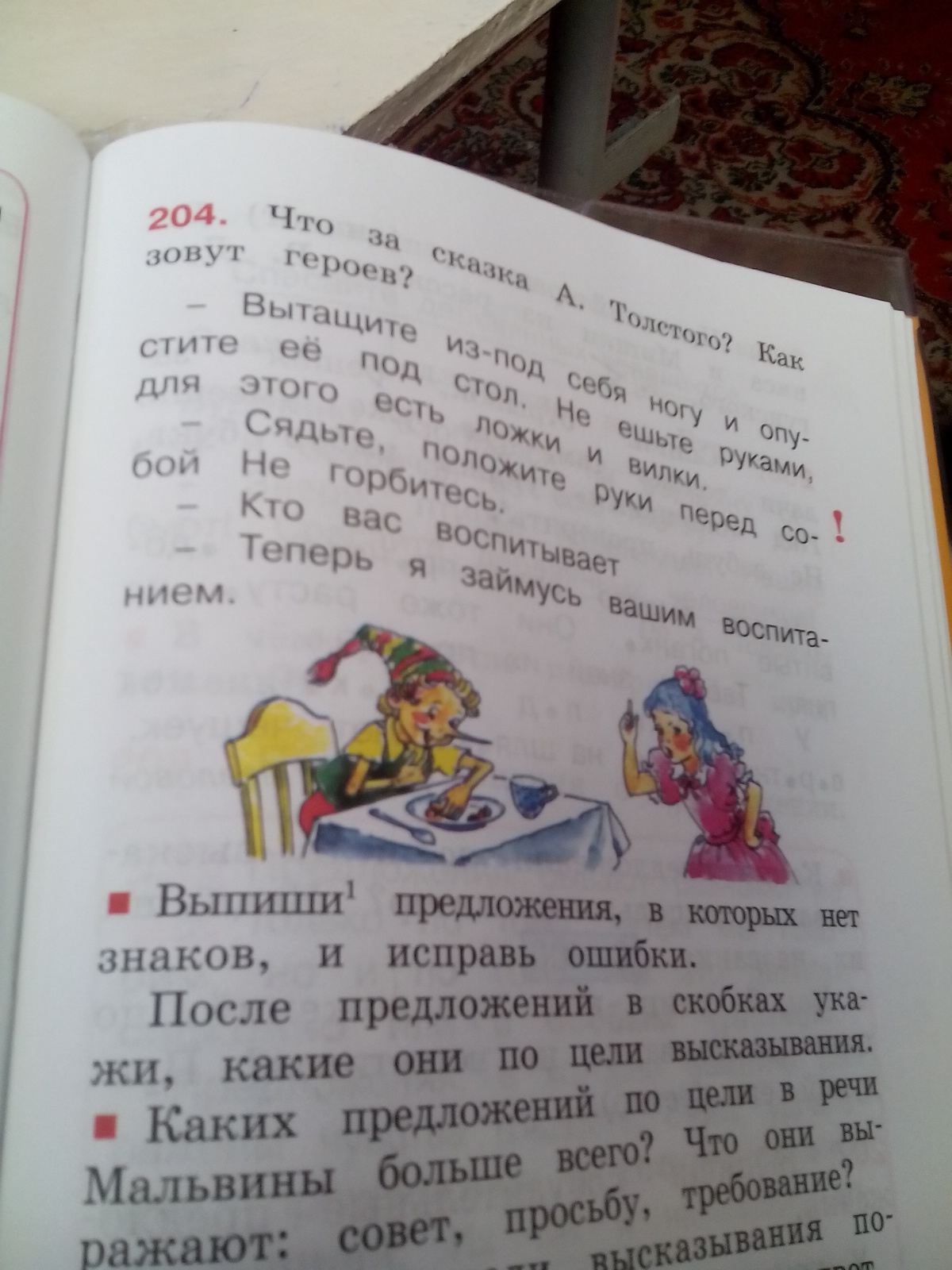 упражнения 204. что за сказка а. толстого? как зовут героев? выпиши предложения , в которых нет знаков, и исправь ошибки.