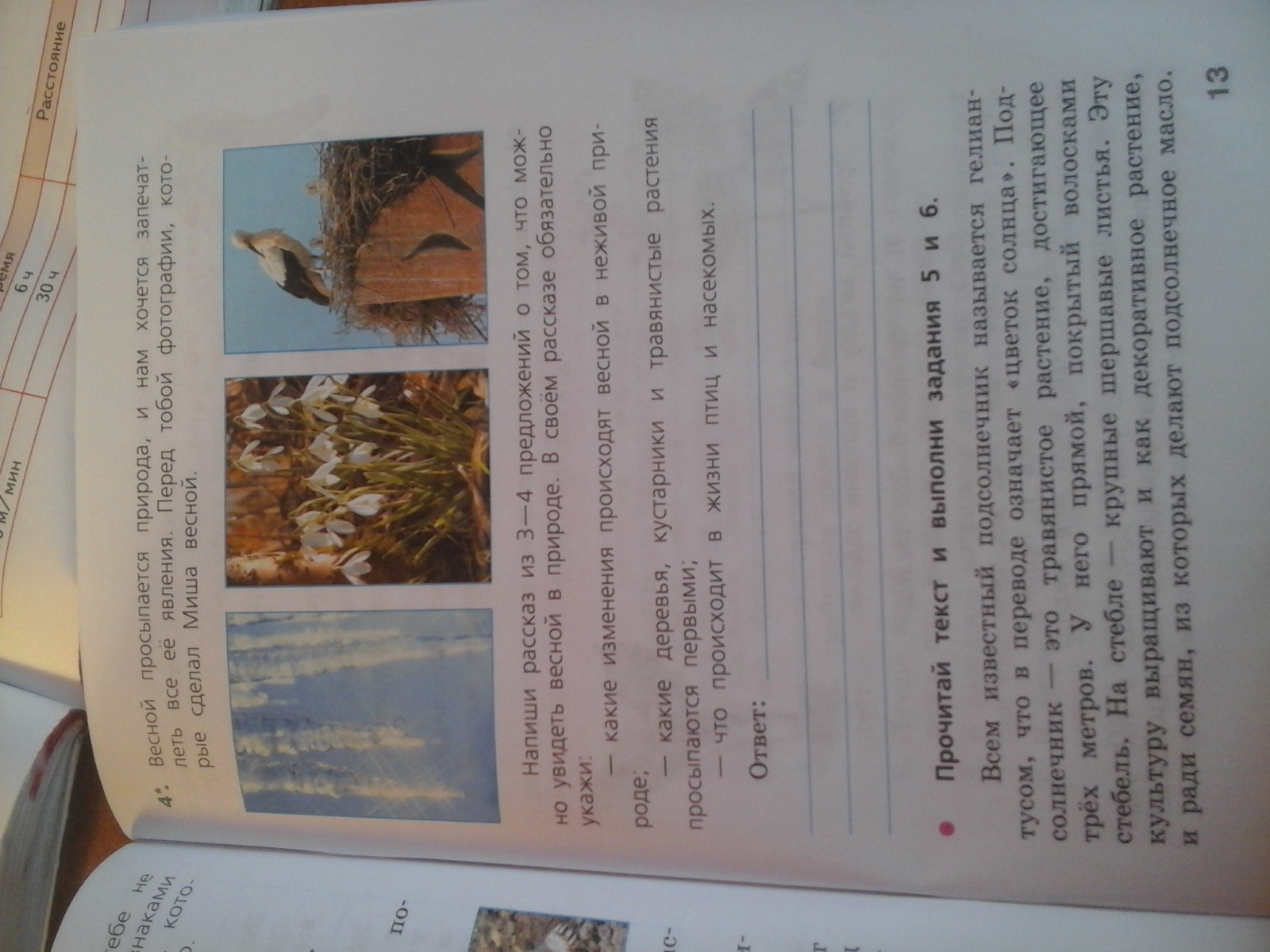 помогите пожалуйста задание 4 нужно написать не большое рассказ в него должно входить все что там написано какие изменения происходят весной...