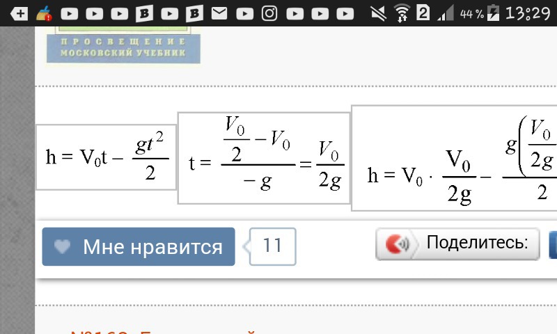 4. Груз падает с высоты 54м. Разделите эту высоту на такие три части, чтобы на прохождение каждой требовалось одинаковое время. 5. На какой высоте скорость тела, брошенного вертикально вверх со скоростью, уменьшается вдвое.