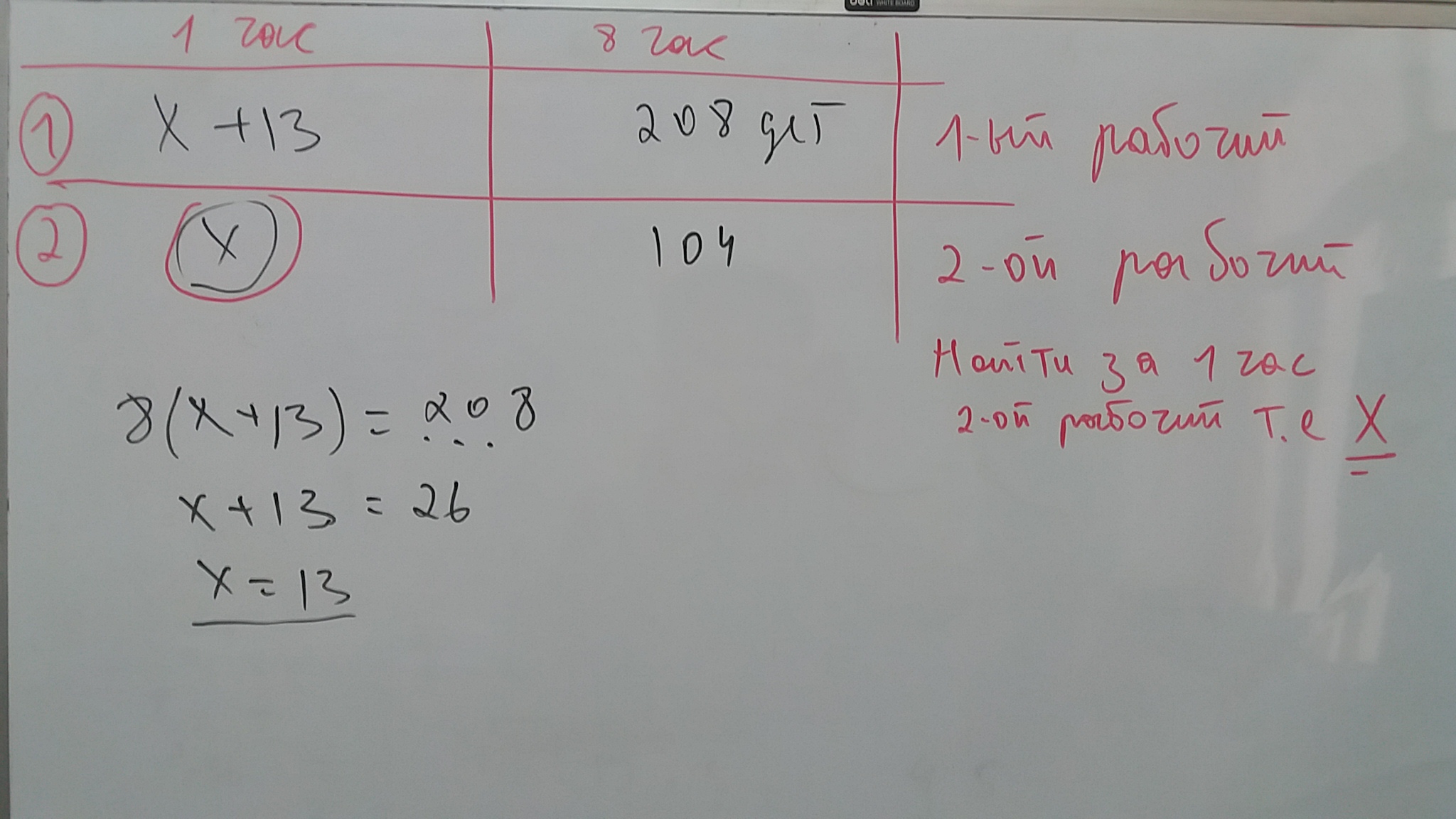 2) Примем за Х количество деталей, которое делает за час второй рабочий, тогда первый за час сделает (х+13) деталей