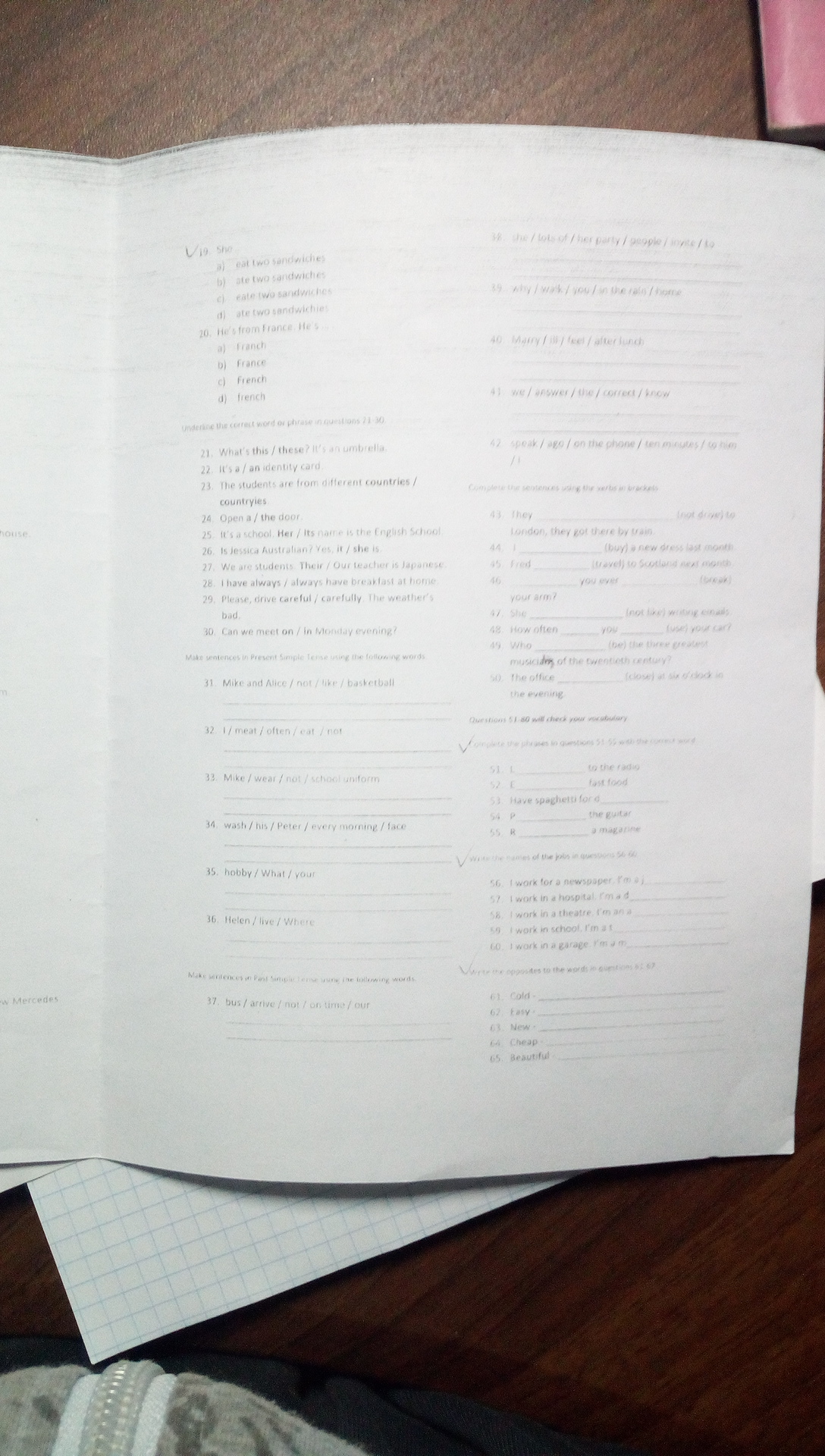 61. hot 62. difficult 63. old 64. expenive 65. ugly