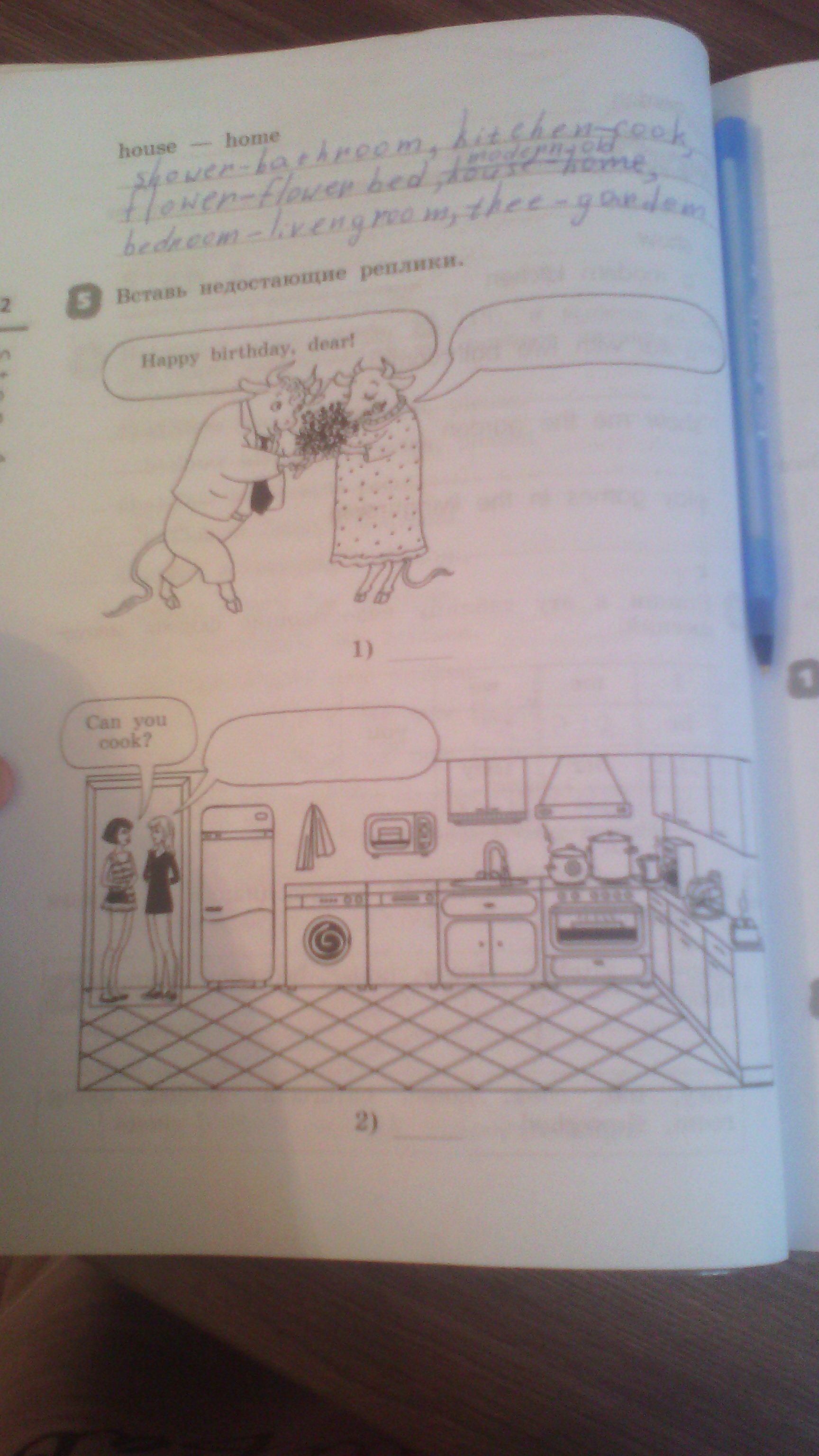 Реплики a) Oh, thank you, I love flowersb) Every morning after breakfast) No. My modern kitchen does all the work for me