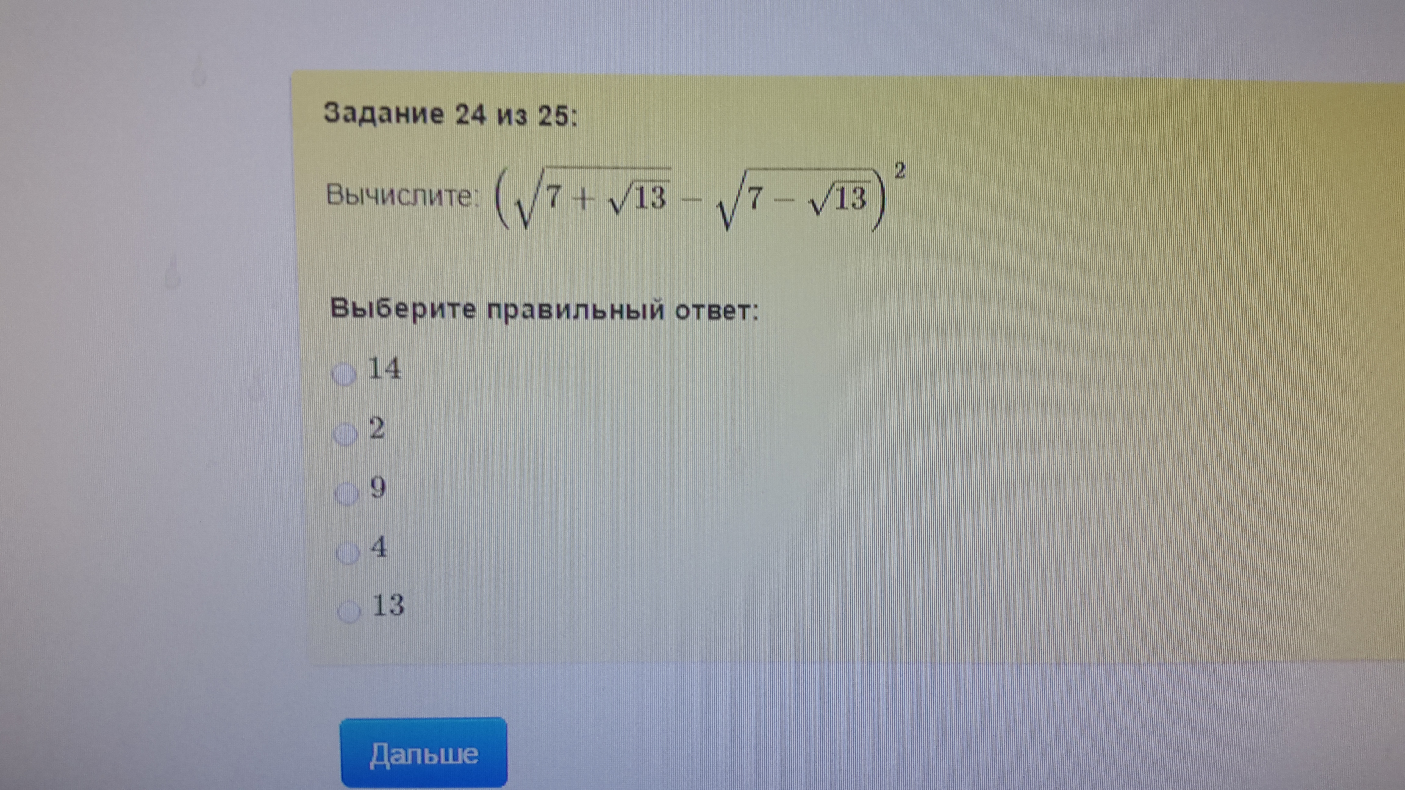 Ответ 2 √7 = 2,6 √13 = 36