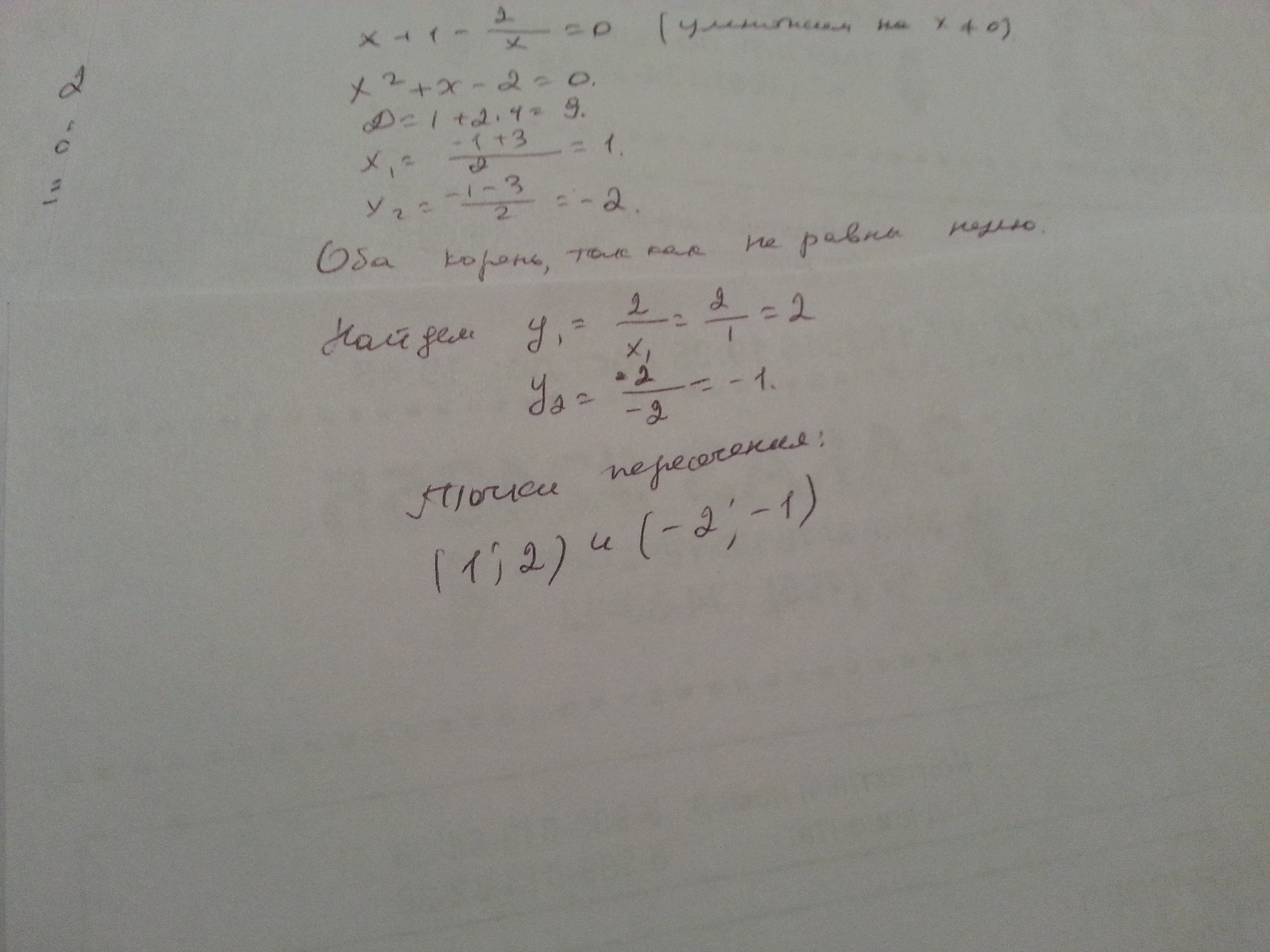 x^2+x=2, причем х не равен 0