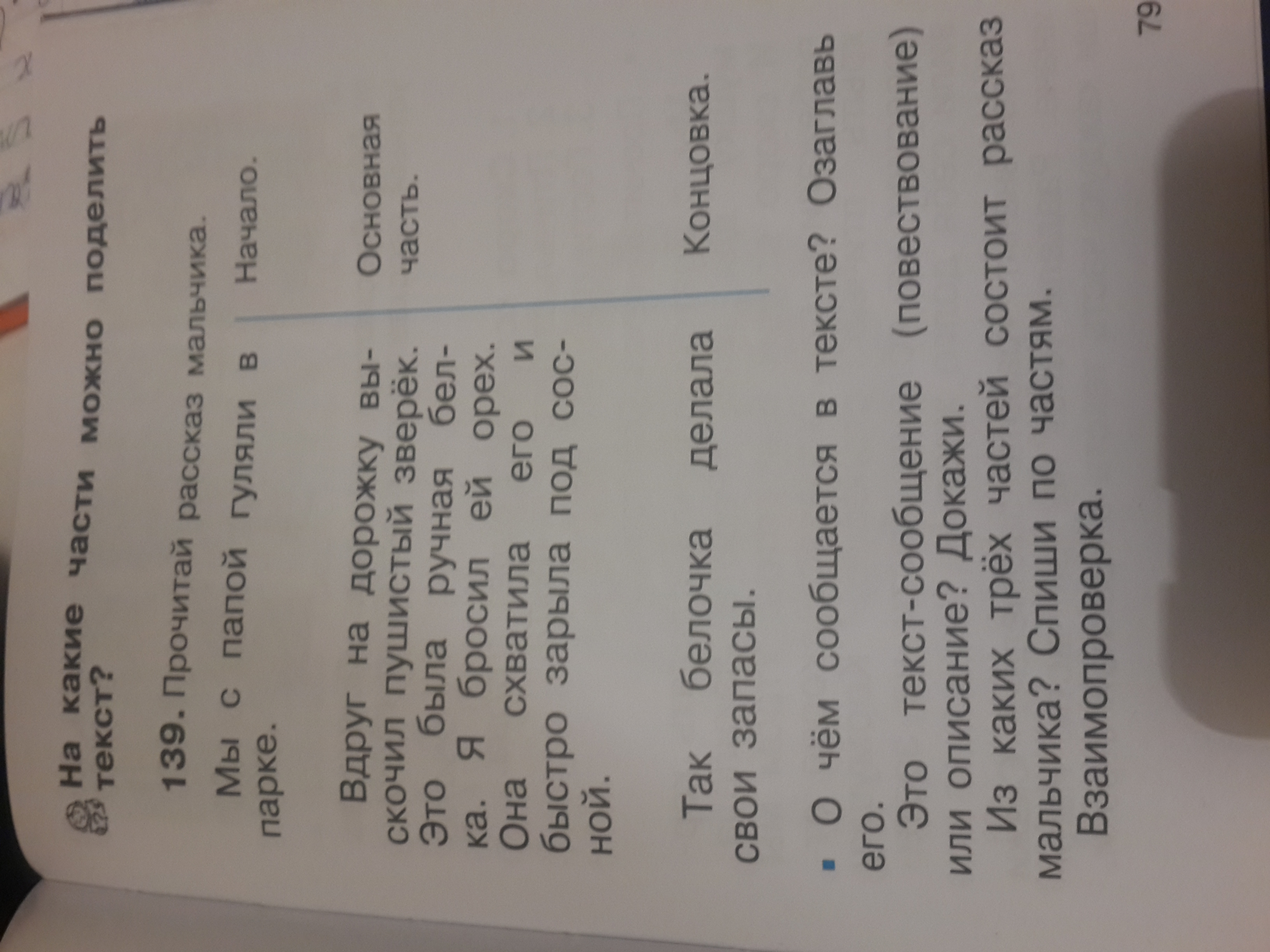 В тексте рассказывается о том, как семья гуляла в парке, и они встретили белочку. О том, как ей дали орешек, в последствии чего у нее был на один больше в запасе.