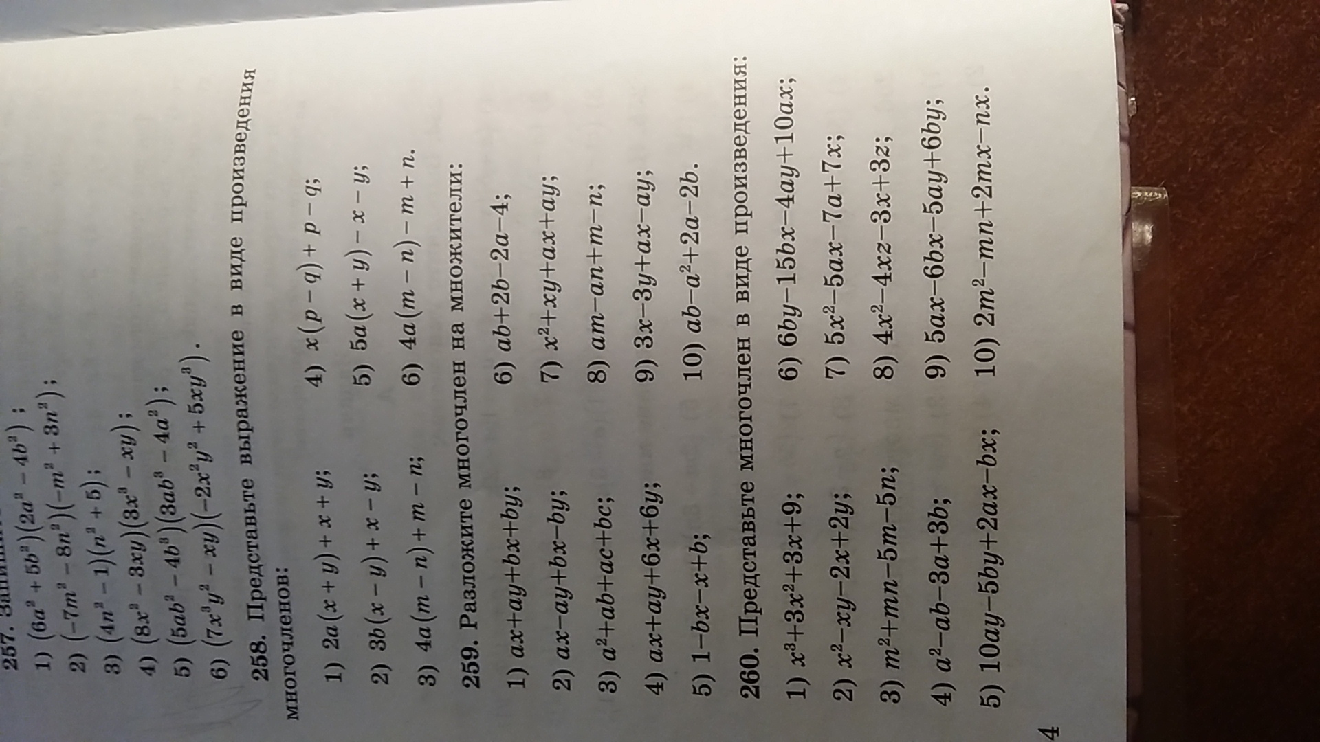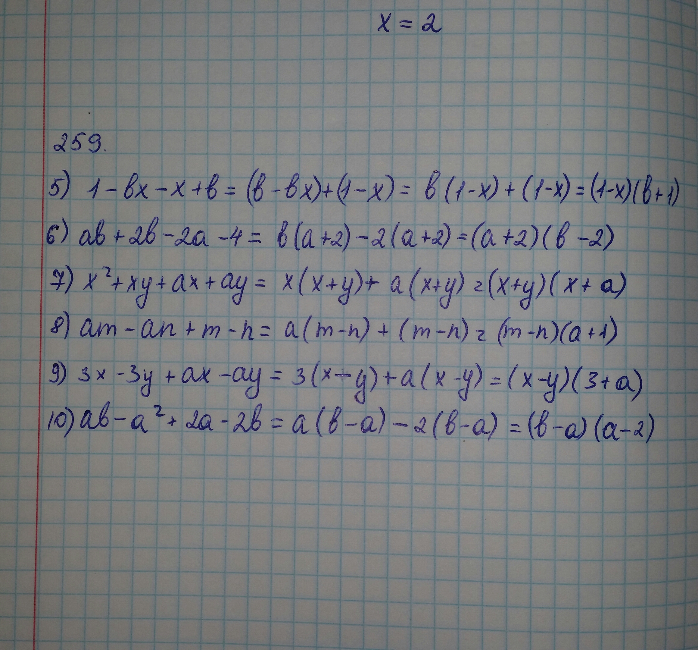 разложите многочлен на множители номер 259!!!!!!!!с 5 по 10 ЛЕГКО НО ВРЕМЕНИ НЕТ ВООБЩЕ!!!!!!!!!!!