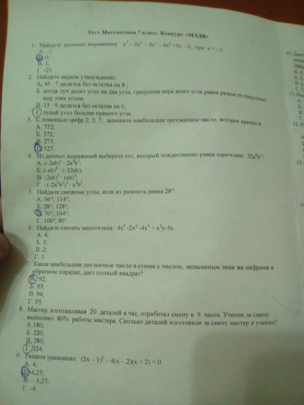 в 6 ответ А т.к. наибольшая степень равна четырем