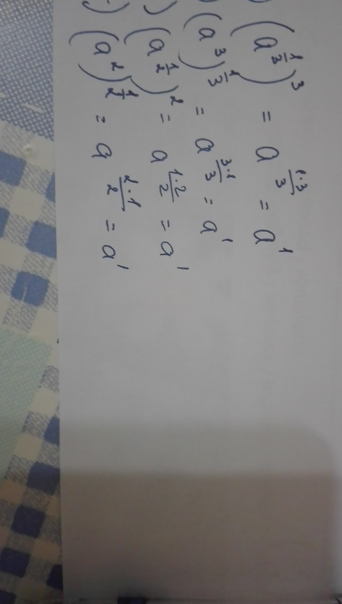 а) (a^(1/3))^3 то есть 3*1/3=1