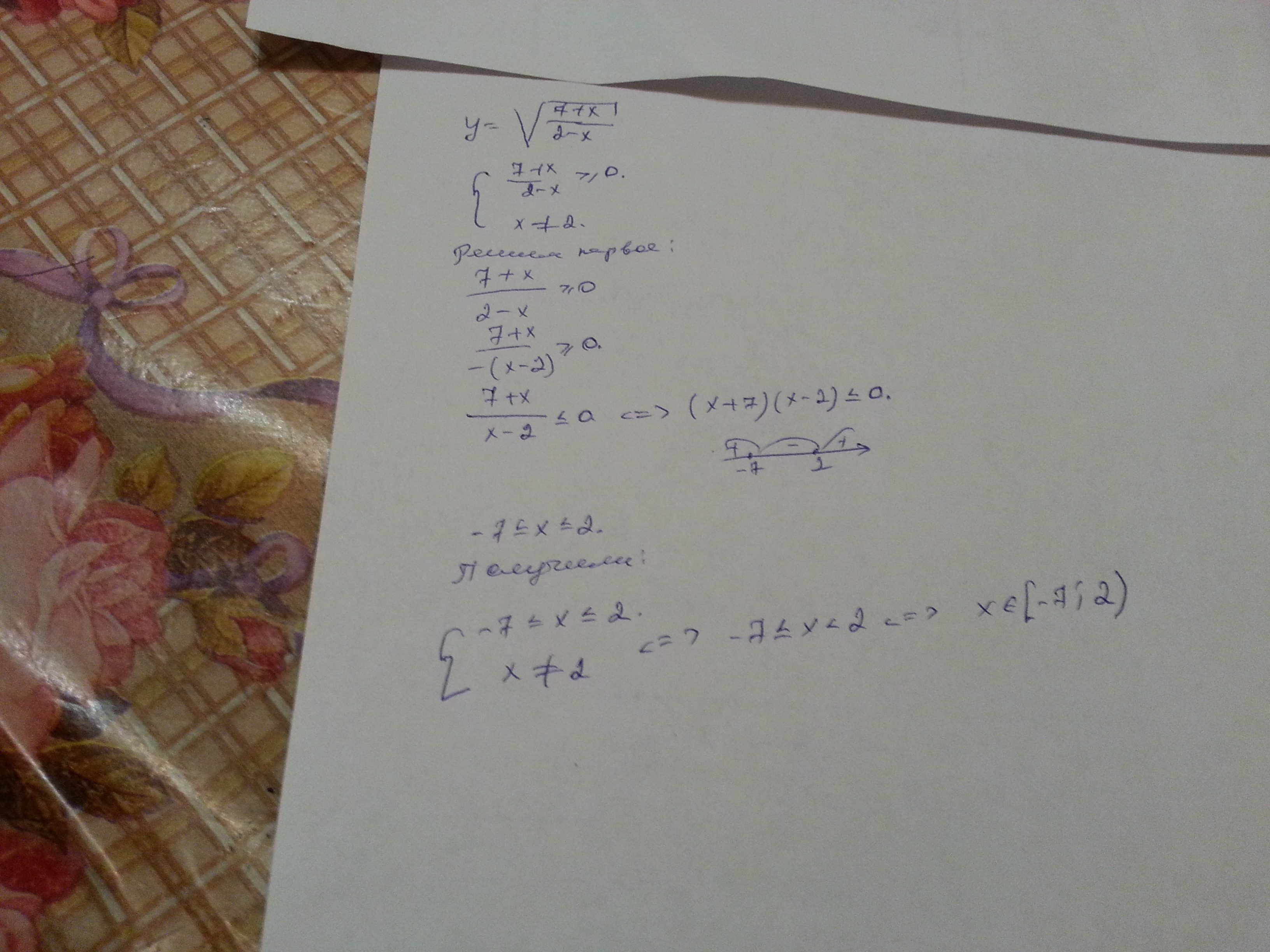 (7+x)/(2-x)≥0