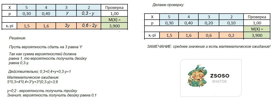 Вероятность сдать экзамен курсантам на отлично равна 0,3, на хорошо 0,4. Определить вероятность получения оценки удовлетворительно, средний балл 3,9