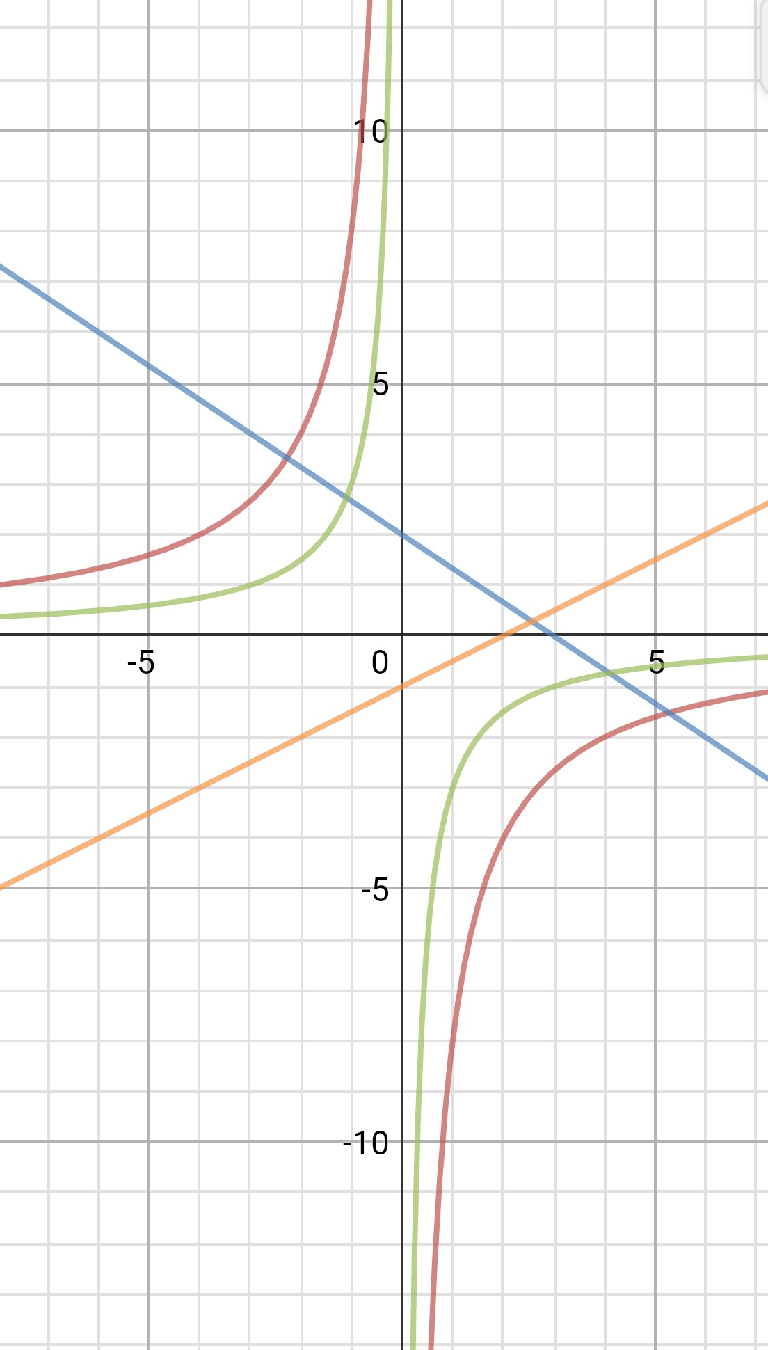 1) на на графике 1. красным цветом; 2.синим; 2 решения;