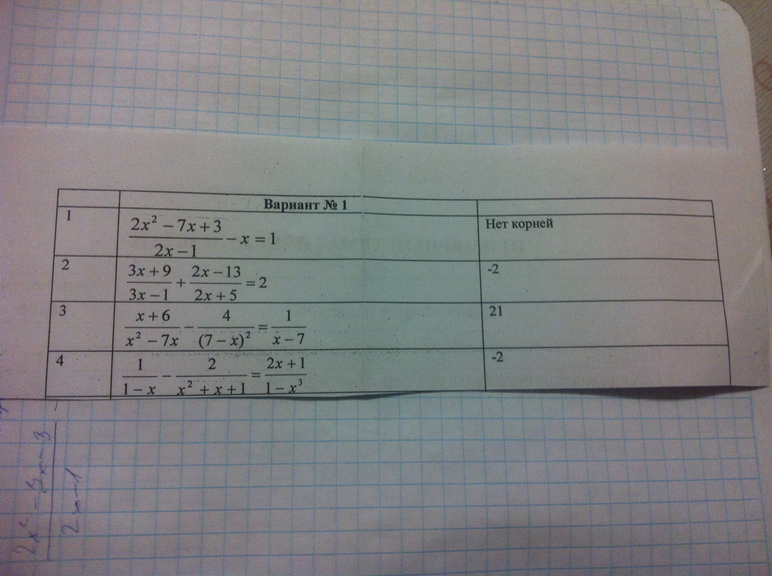 2х² - 7х + 3 - 2х² +х = 2х-1