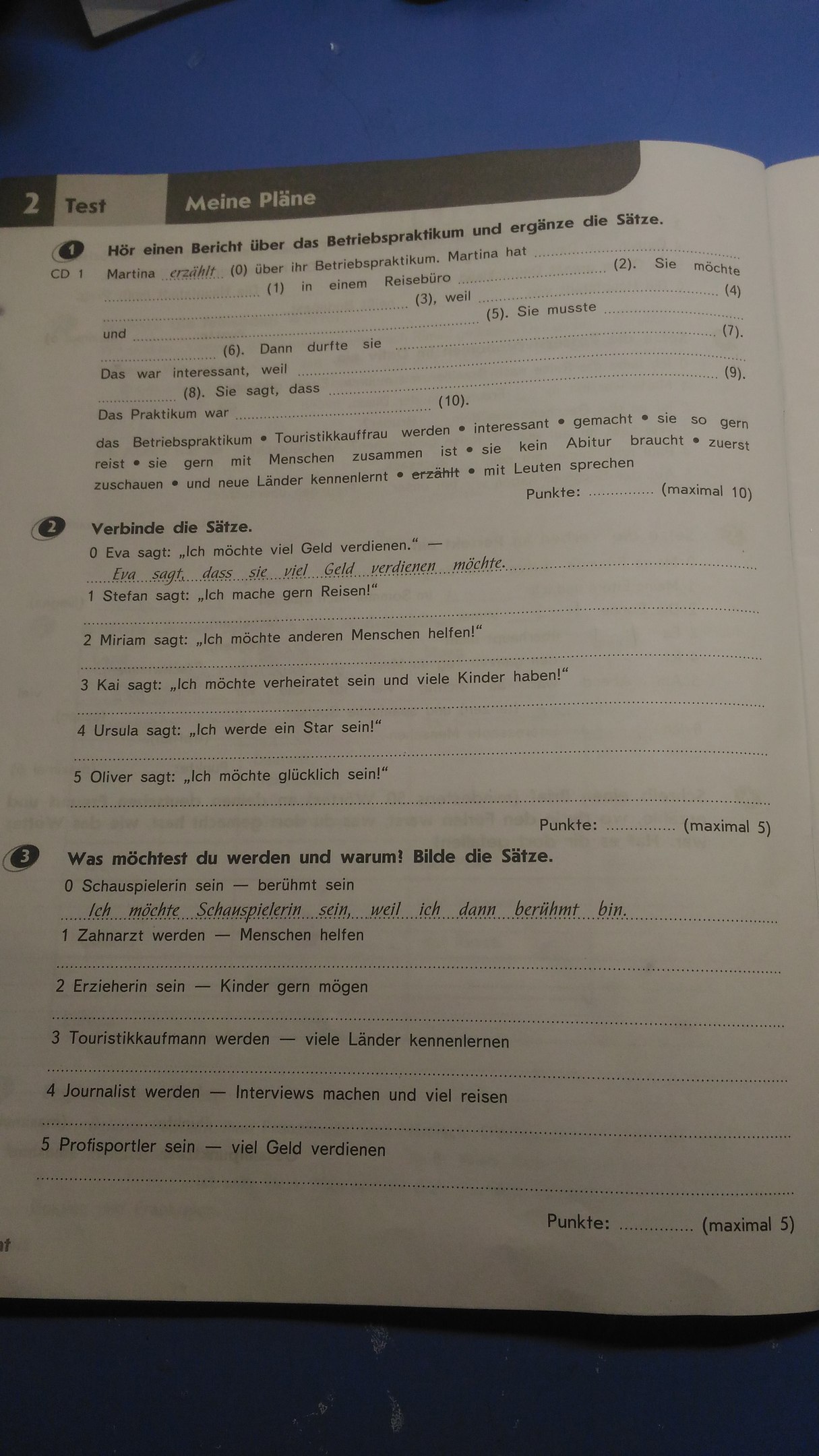 1. Stefan sagt,dass er gerne reisen möchte.