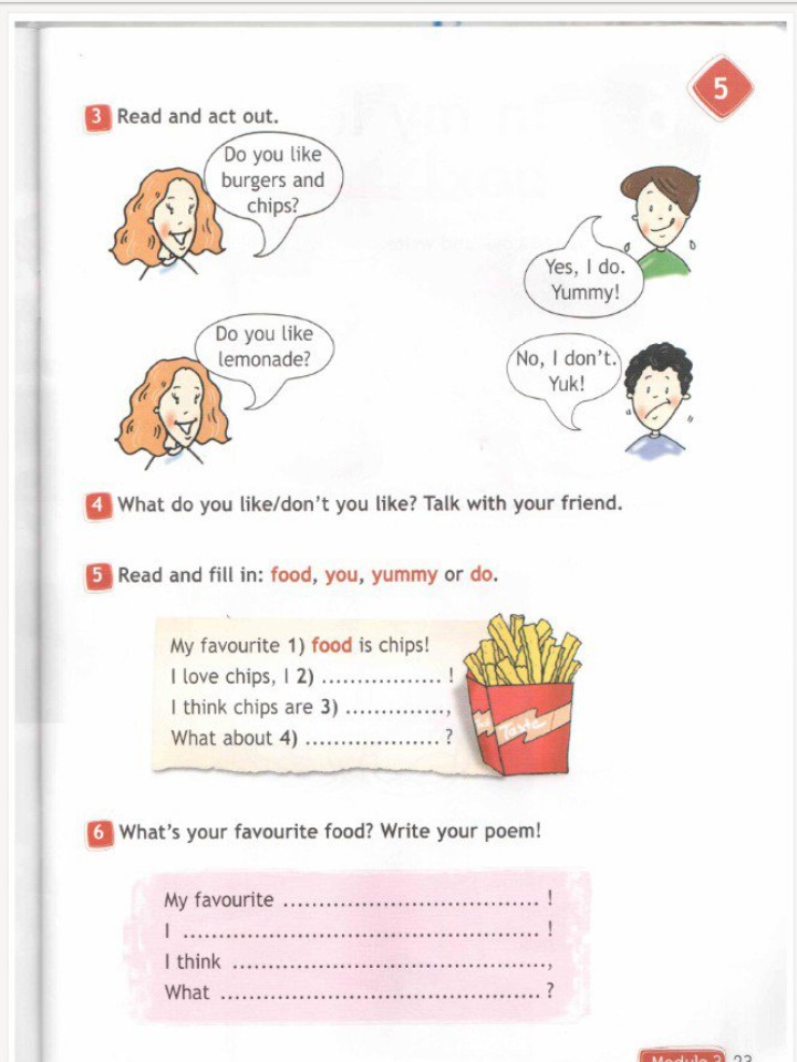 Помогите решить: Read and fill in: food, you,yummy or do.