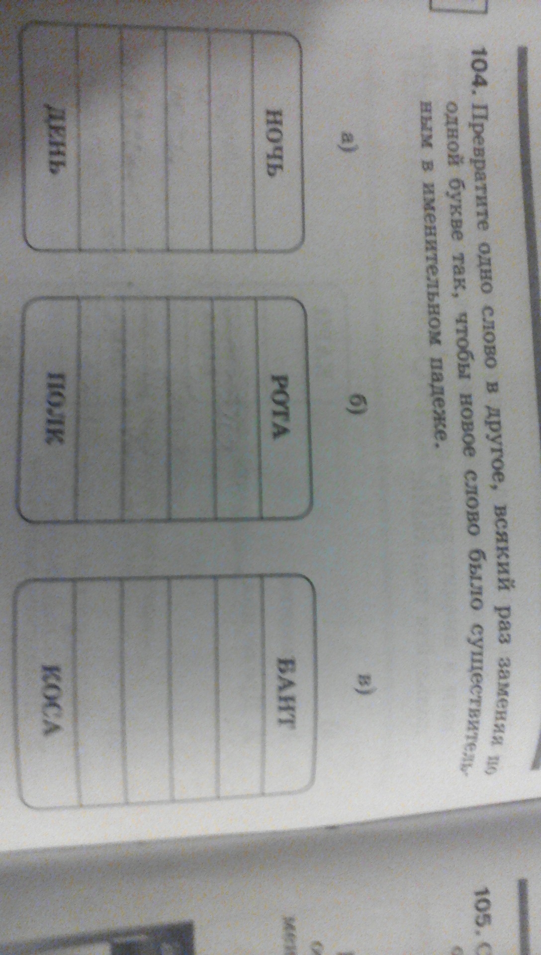 НОЧЬ - НОЛЬ - СОЛЬ - СЕЛЬ - СЕНЬ - ДЕНЬ.