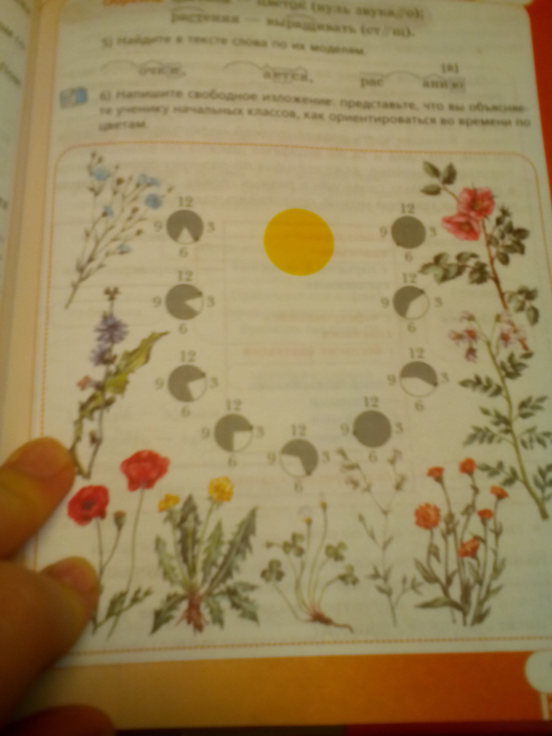 По цветам очень легко узнать время. Нужно узнать как называется этот цветок и про него. Например этот цветок : Днём вянет , а ночью он поднимает свои листья или наоборот. Просто главное знать про цветок когда он вянет а когда расцветает .