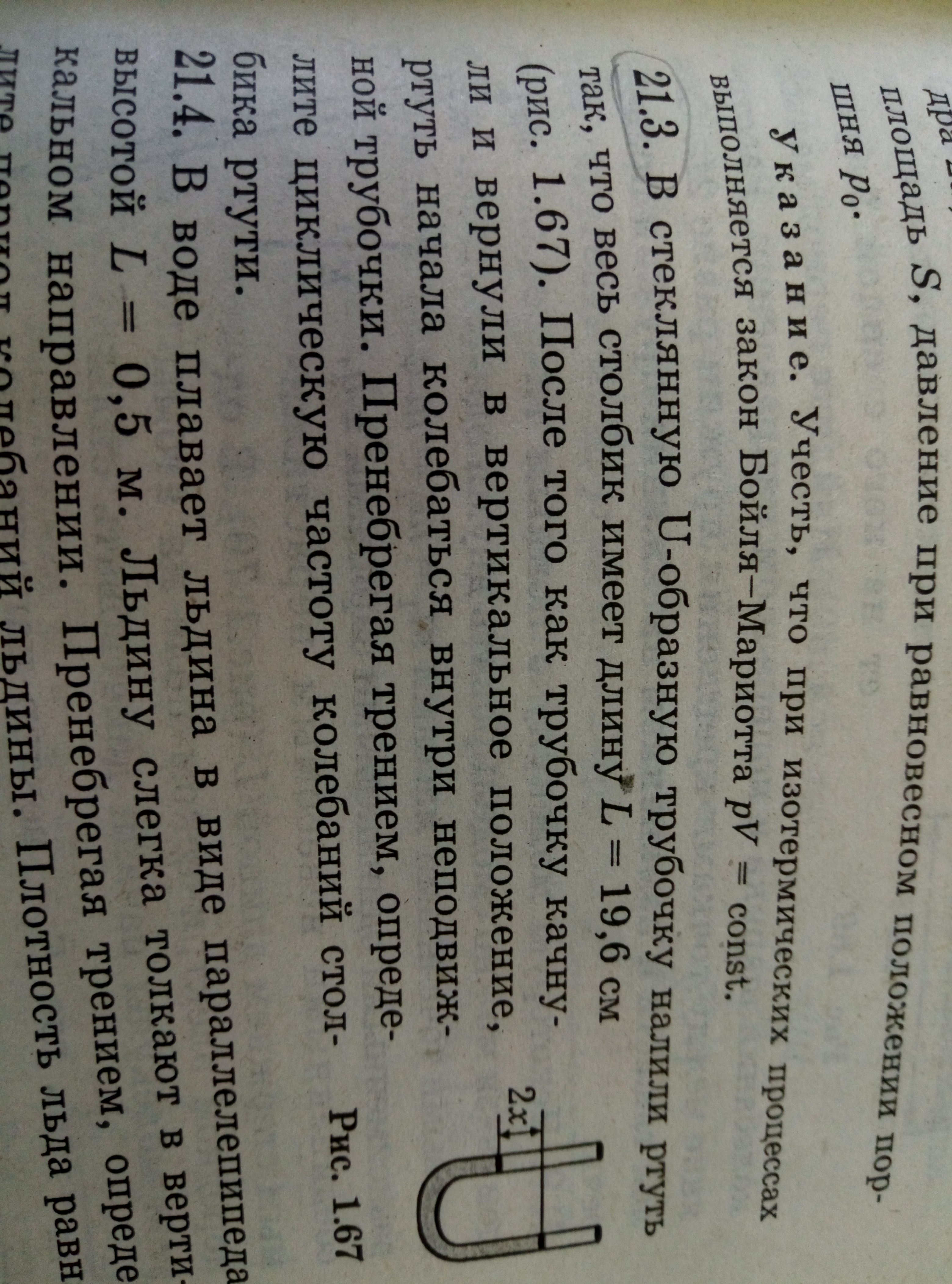 ma = - mg = - ρ*g*2x*S, S - сечение трубки