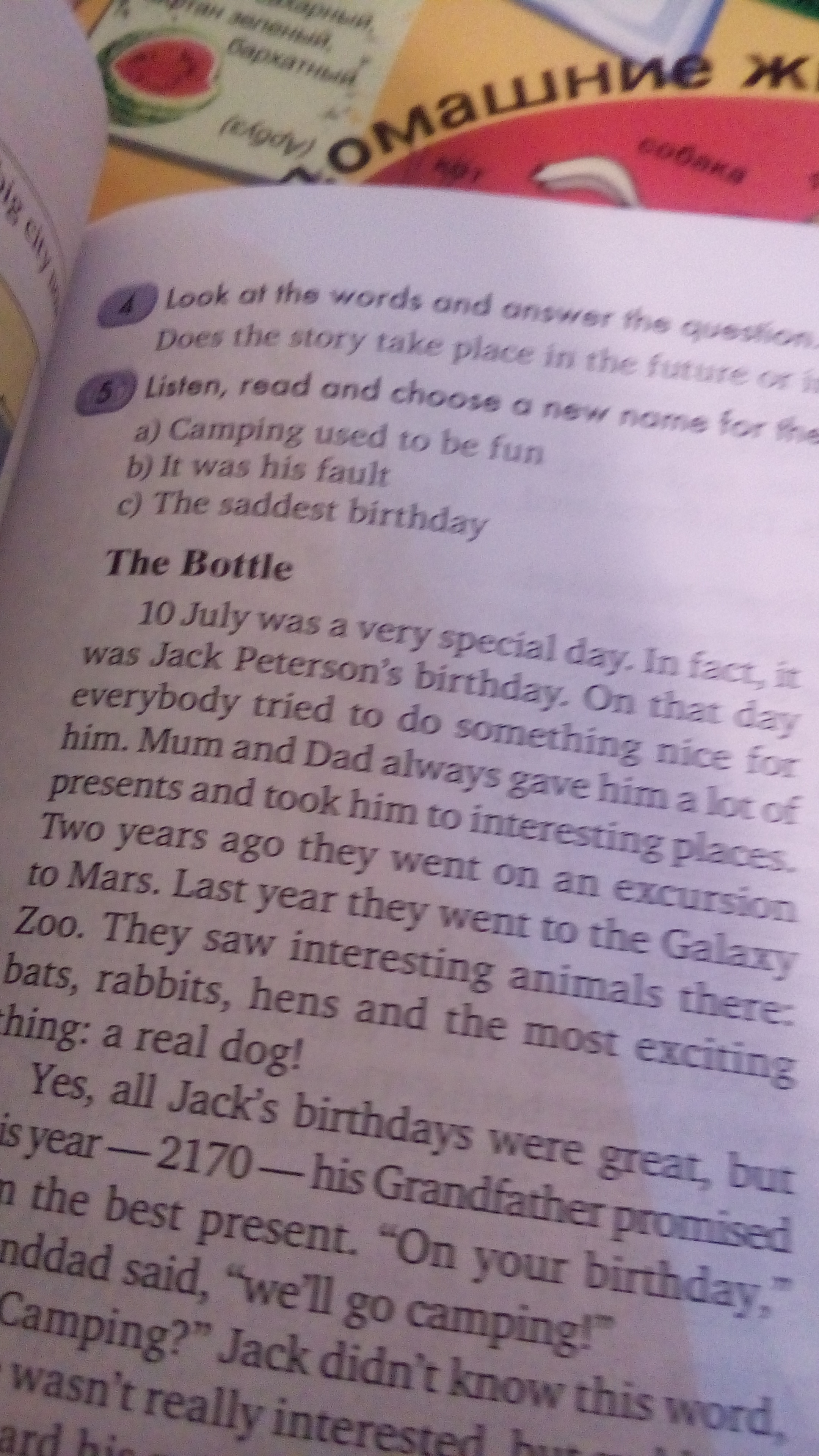 10 июля был очень особенный день. Это значит, был день рождения Джека Петерсона. В этот день каждый старался сделать что нибудь приятное для него. Мама и папа всегда дарили ему много подарков и водили в интересные места. два года назад они посетили выставку Марса. В прошлом году они ходили в Галактический зоопарк. там они видели интересных животных:летучих мышей, кроликов, хомяков и самое восхитительное: настоящую собаку.