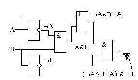 (¬A&B+A)&¬B = (A+B) & ¬B = A¬B+0 = A¬B