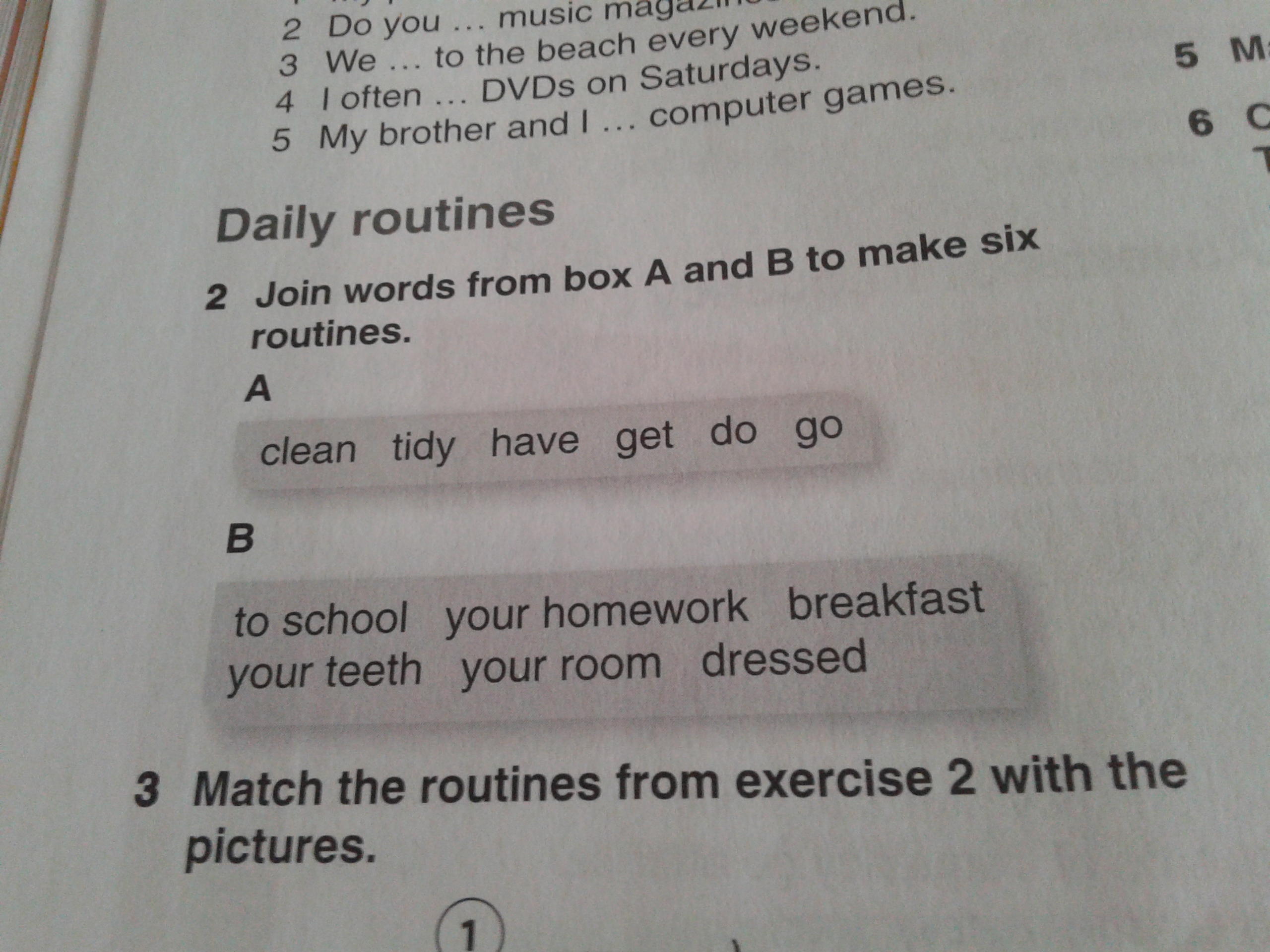 Clean your teeth, tidy your room, have breakfast, get dressed, do your homework, go to school