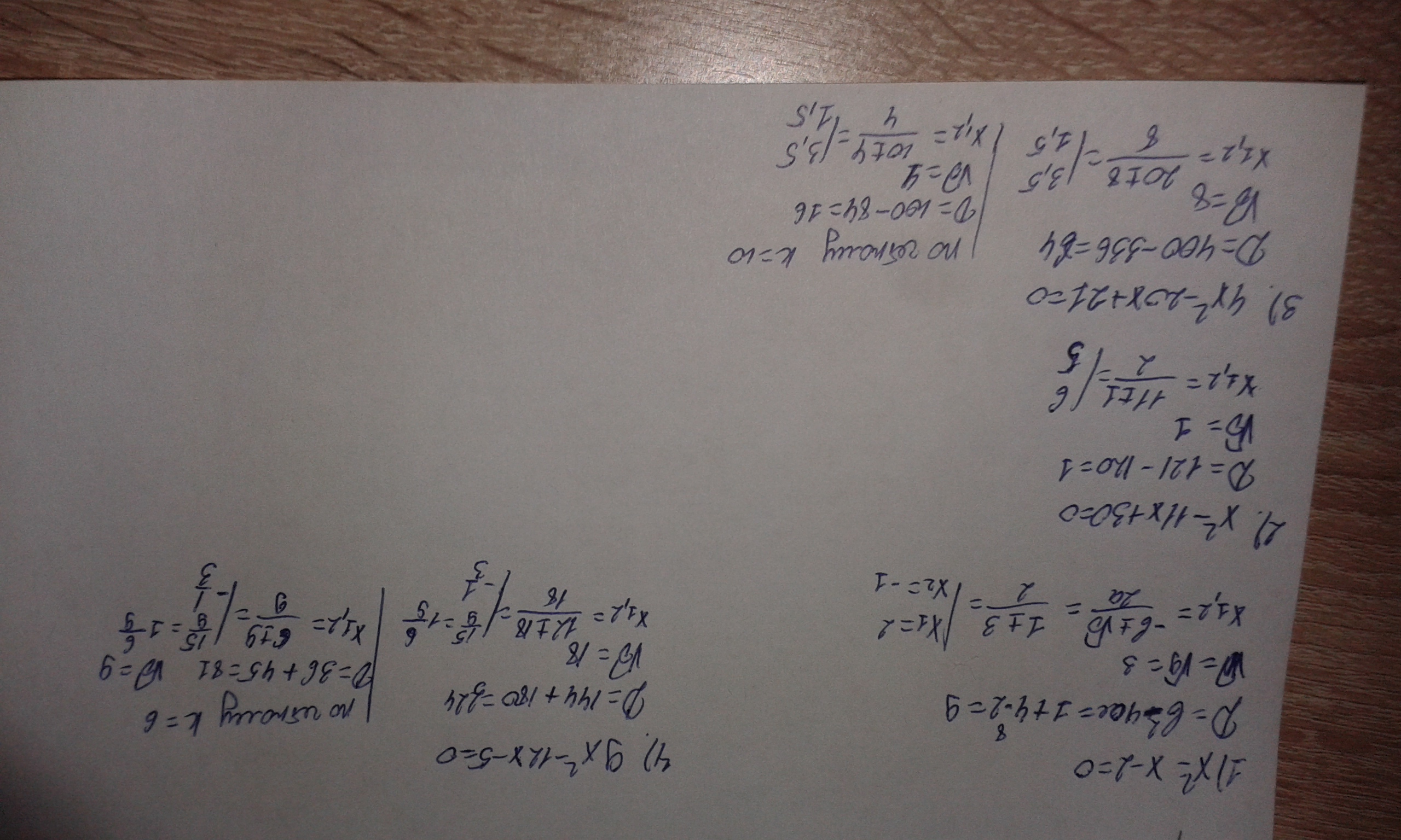 Надеюсь поймешь мой почерк. Я не знаю решаешь ли ты по четному коэффициенту, на всякий случай оба варианта написала. Удачи тебе! Если что спрашивай!