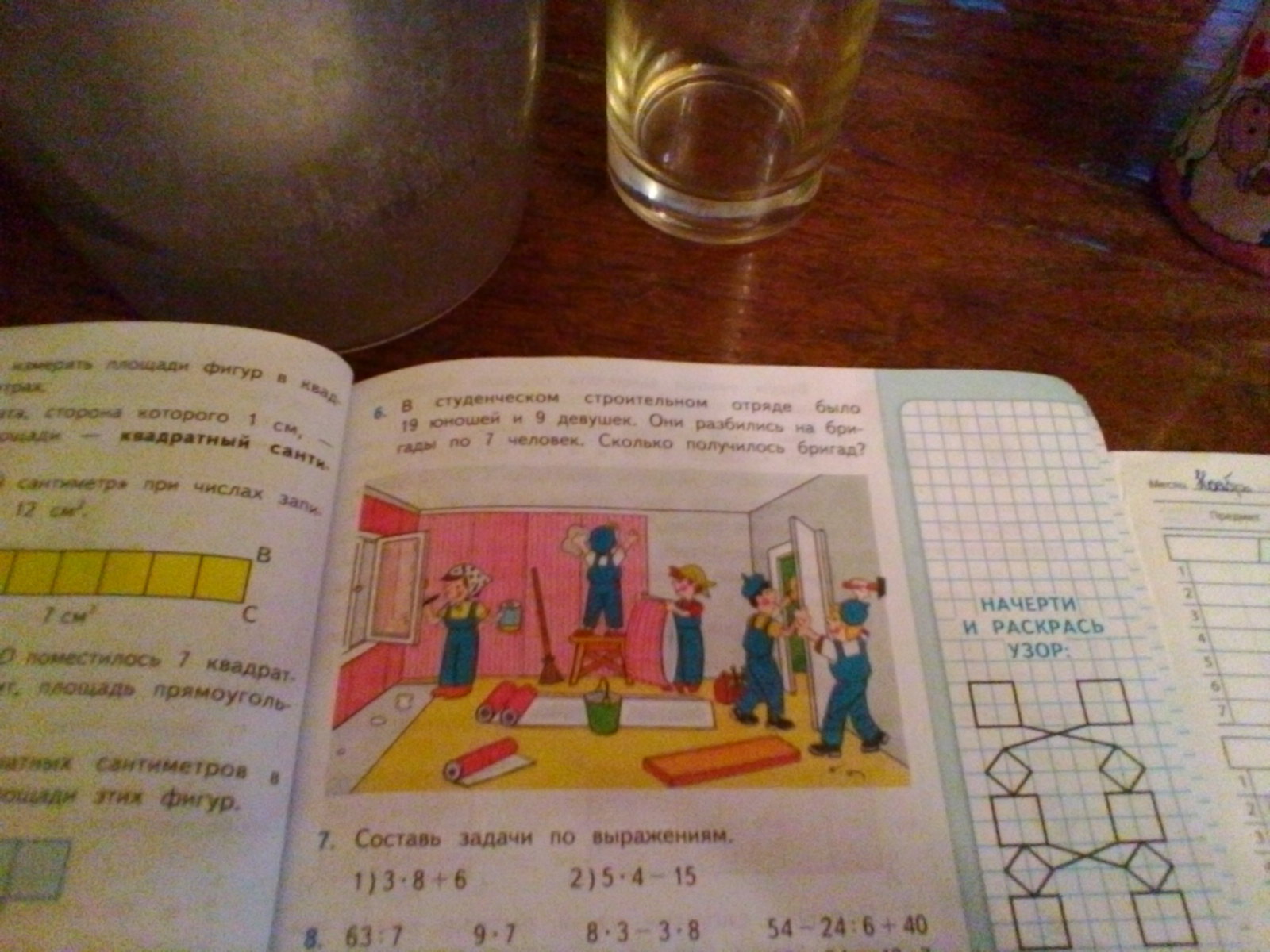 3 класс математика в учебнике страница 59 задача номер 6 Волкова в студенческом строительном отряде было 19 юношей и 9 девушек они разбились на бригады по 7 человек Сколько получилось бригад