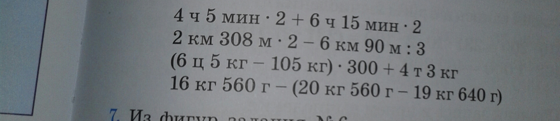 4ч5мин.=245мин.-переводим всё в минуты. теперь умножаем на 2 -245*2=490. Теперь с другой стороны делаем тоже 6ч15мин.=375мин. 375*2=750. Складываем 490+750=1240 и переводим в Часы и минуты 1240-23ч.20мин.и так с остальными (где минус там вычетание)