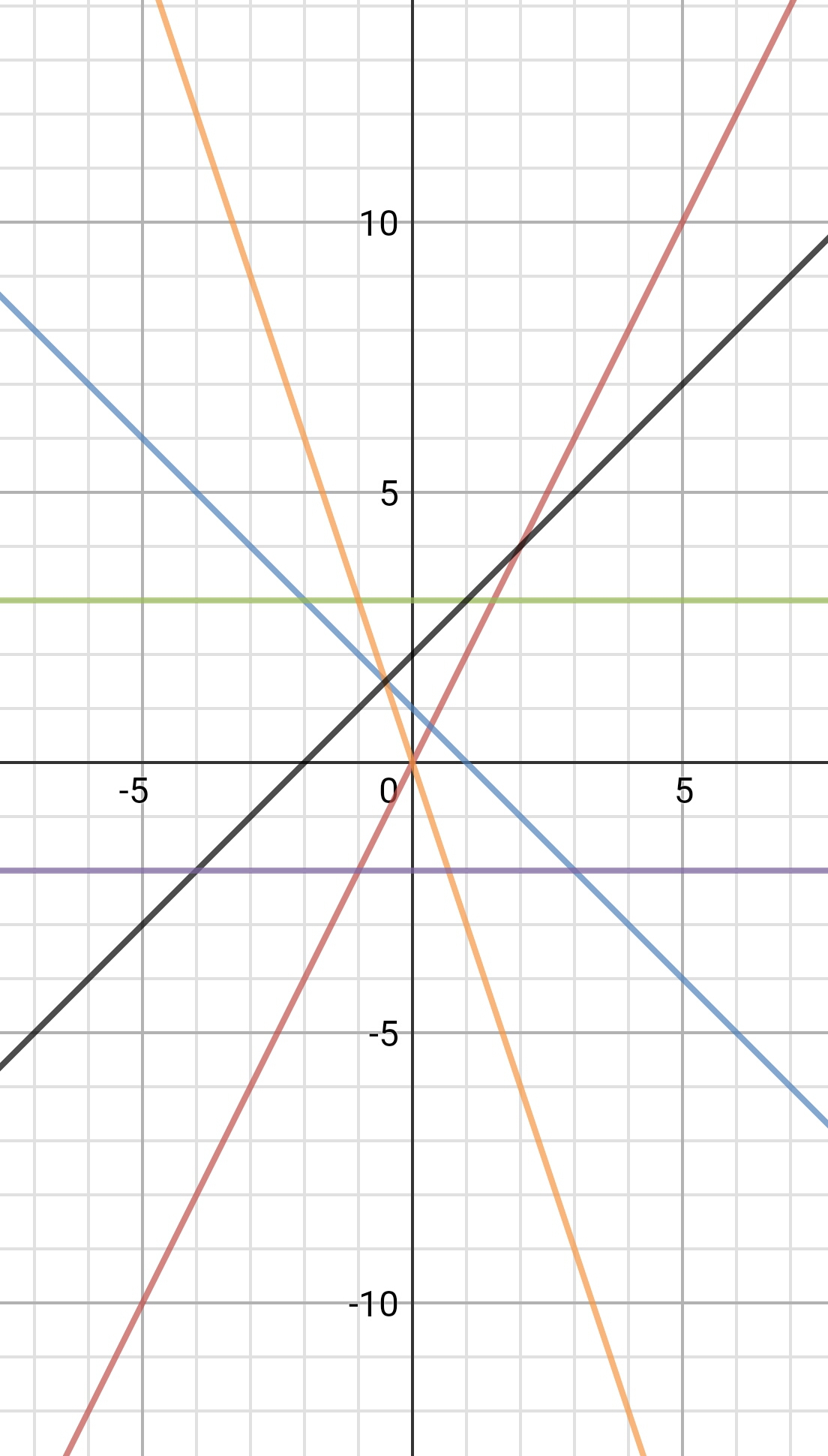 2) y=-3x - оранжевым; y=x+2 - черным; y=-2 - фиолетовым;