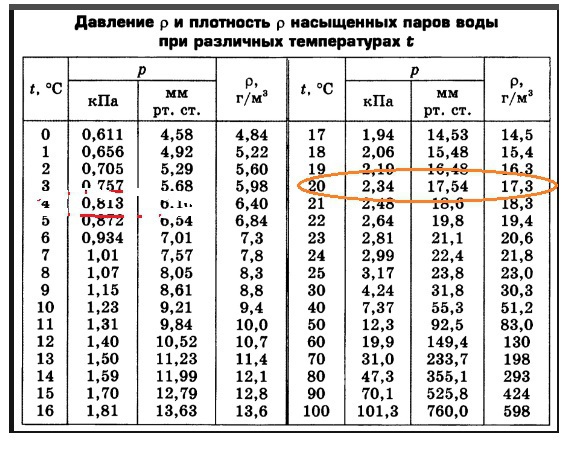 ρ₂₀ = 17,3 г/м³ < 19,0 г/м³ (Роса ВЫПАДЕТ)
