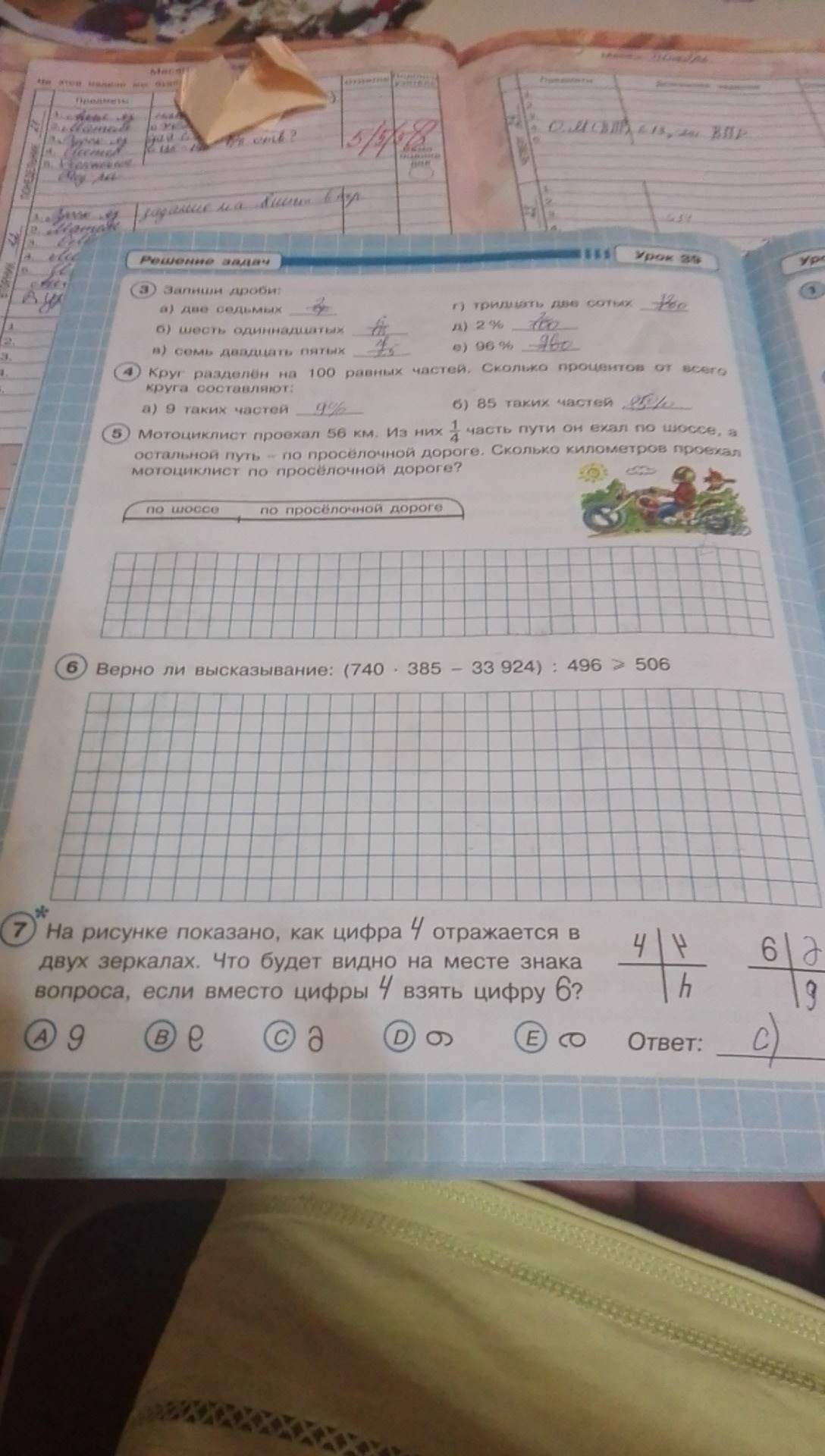 2) 56* 3/4 = 14*3= 42 (км) - по проселочной дороге
