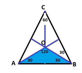 Точка пересечения медиан, она же точка пересечения биссектрис - О.