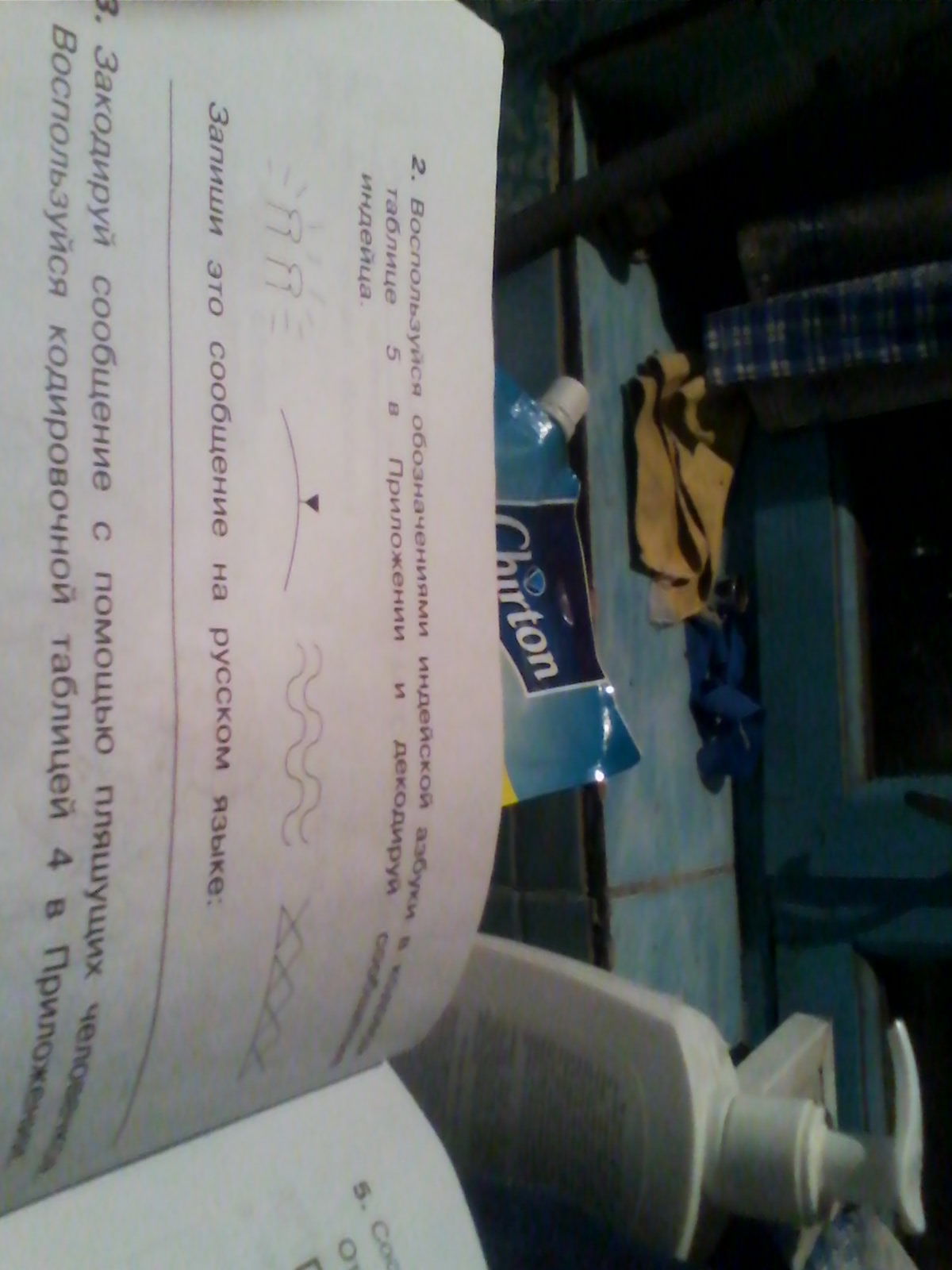 воспользуйся обзначениями индейской азбуки в кодовой в приложении и декодируй сообщение индейца
