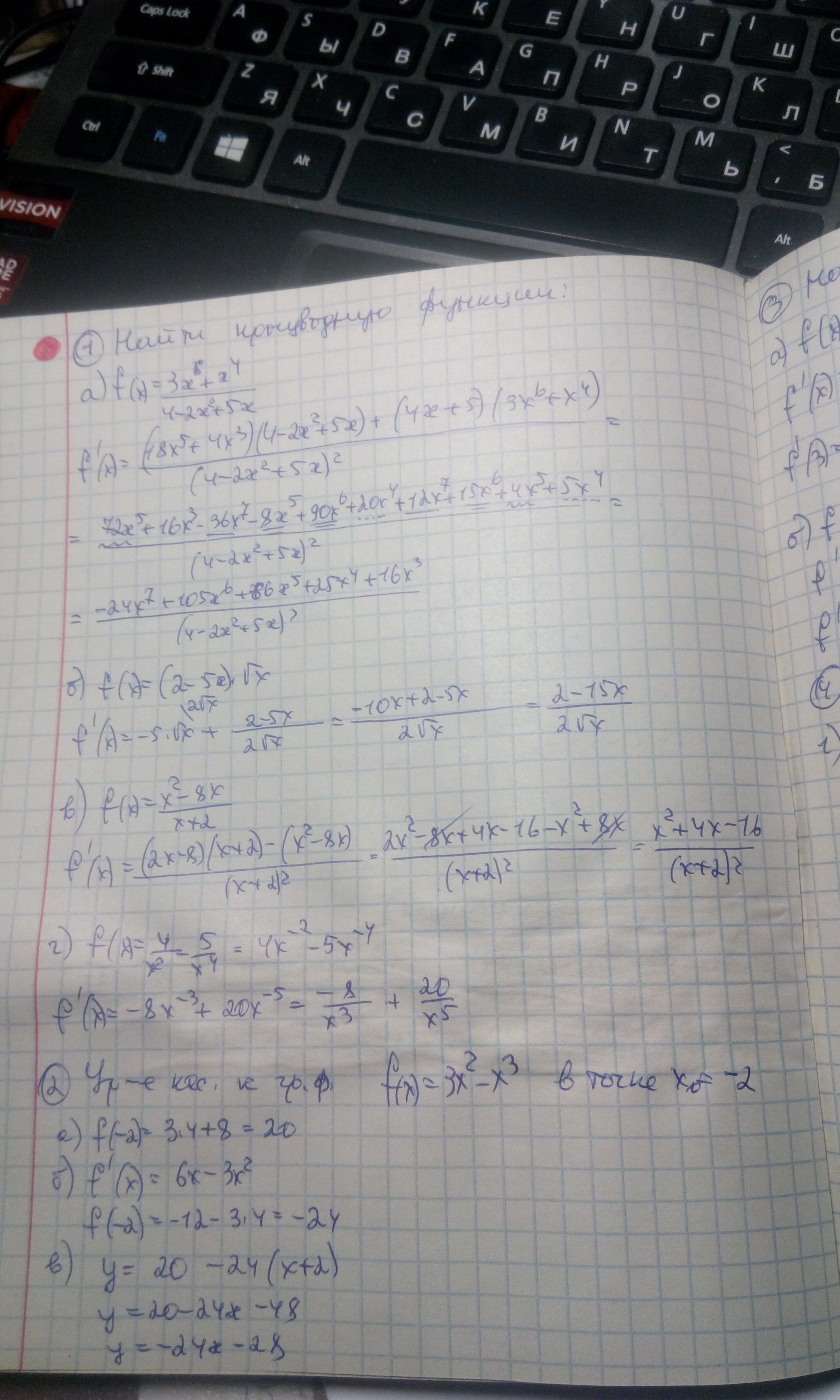 1)f(x)3x^6+x^4/4-2x^2+5x. 2)f(x)=(2-5x)√x. 3)f(x)=x^2-8x/x+2. 4)f(x)=4/x^2-5/x^4.