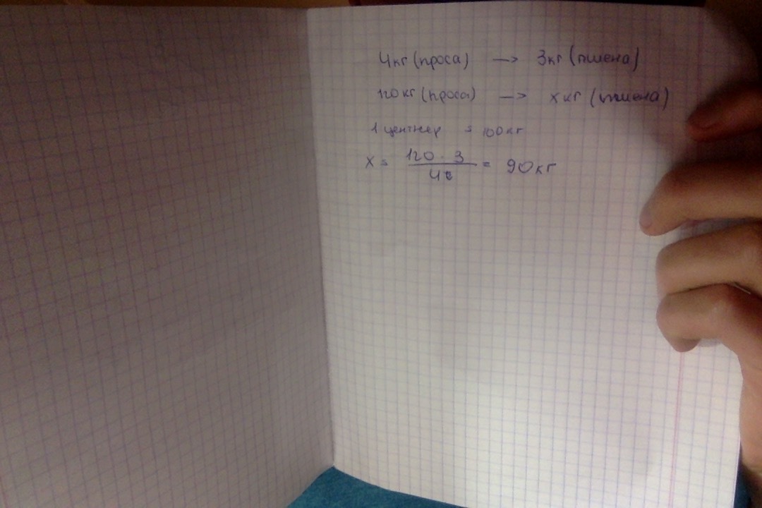 Помогите мне пж решить задачу: из 4 кг проса получают 3 кг пшена.сколько килограммов пшенаполучат из 1 ц 20 кг проса?